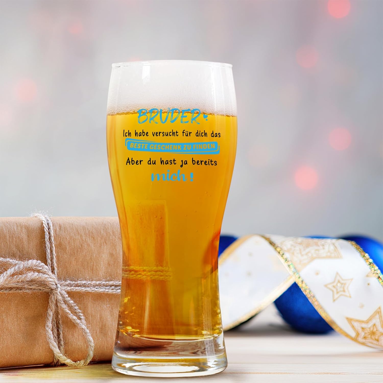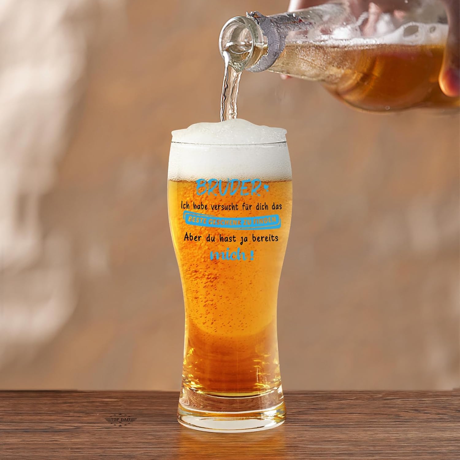 • Подарък за брат ти: „Братко, опитах се да намеря най-добрия подарък за теб. Но ти вече ме имаш!“ - Специален и ценен подарък от бирена чаша за брат ти. Уникалният ѝ дизайн може да изненада брат ти и да изрази любовта ти. Изпрати му най-добрите си пожелания с нашата красива бирена чаша! Това е наистина забавен и специален подарък за брат ти!