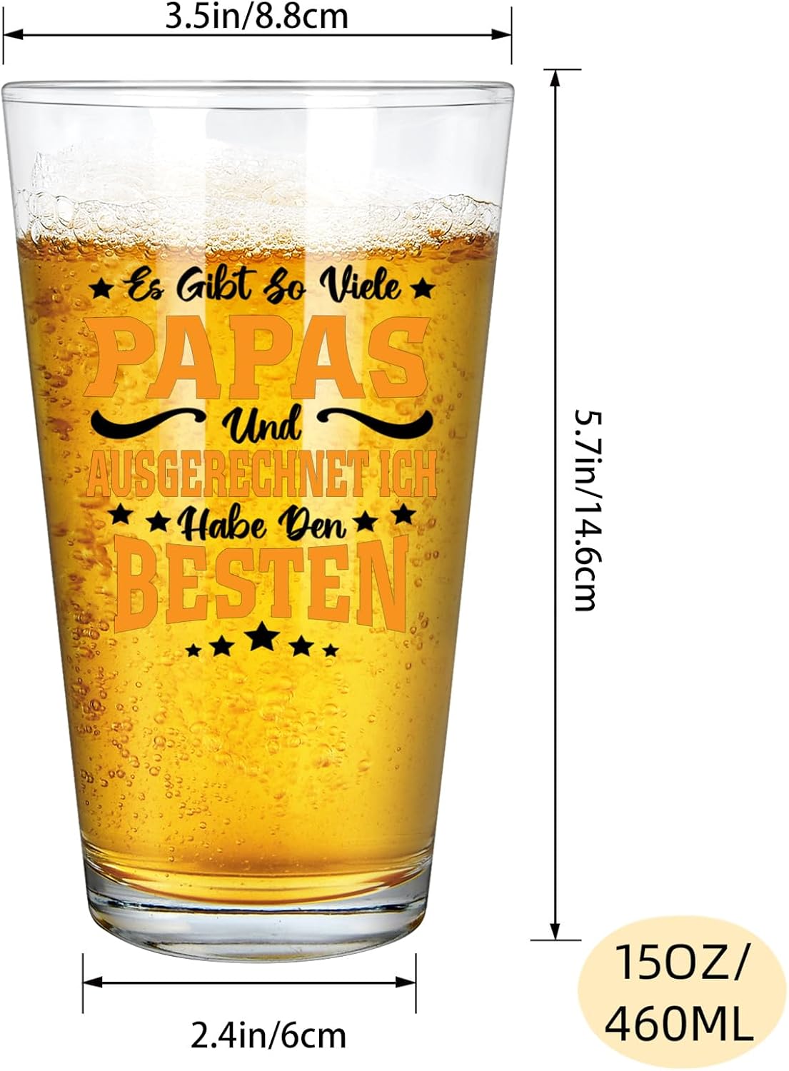 • Висококачествена чаша за бира: Тази висококачествена чаша за бира е изработена от първокласно стъкло, без BPA и олово. Надписът е без олово и устойчив на избледняване. Чашата има по-тежка, плоска основа, която е по-малко податлива на счупване. Нашата чаша за бира може да се използва в продължение на много години, а класическият ѝ дизайн осигурява превъзходно изживяване при пиене.