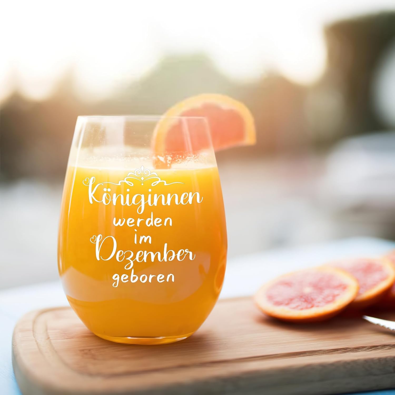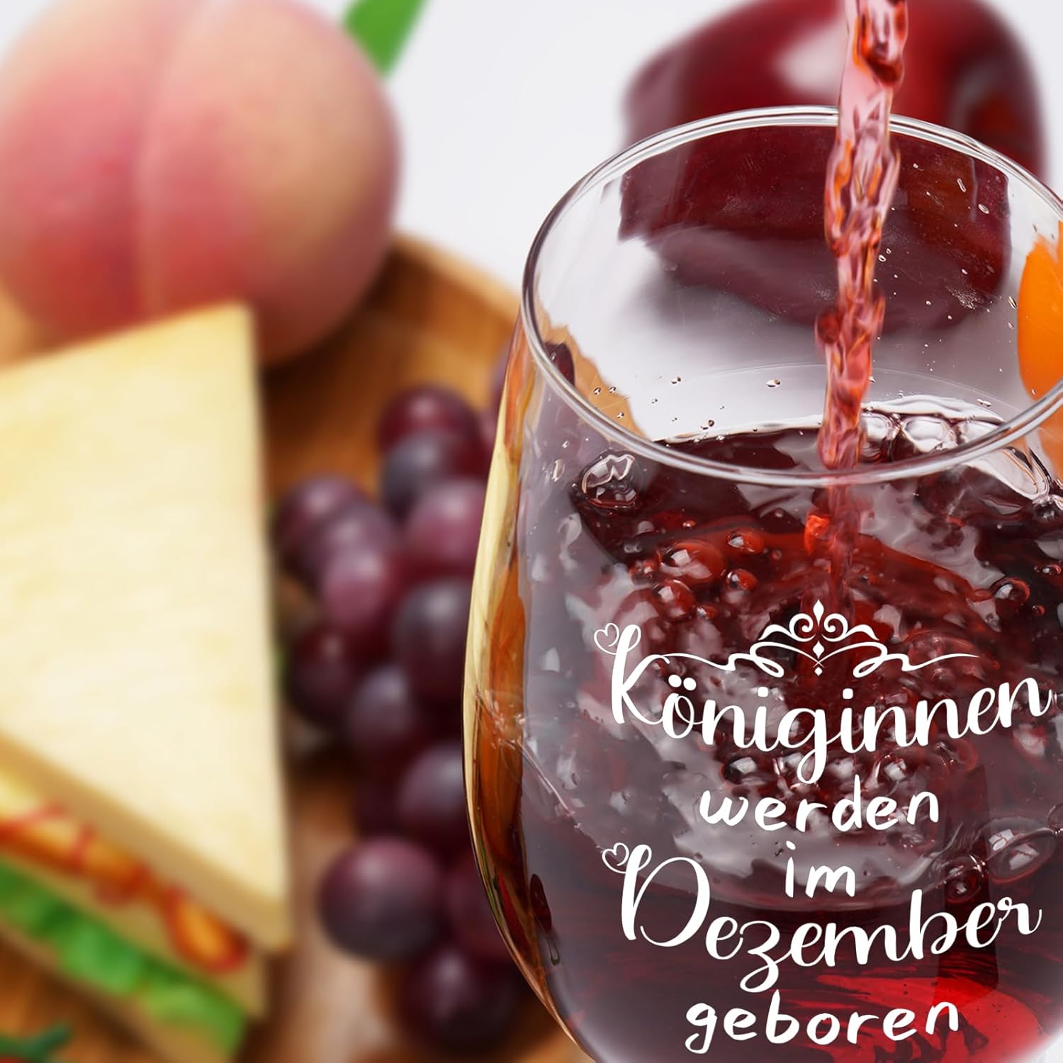 Подарък за чаша за вино за приятелка - Забавен подарък за рожден ден за жени, сестри, майки - Кралици се раждат през декември - 400 мл