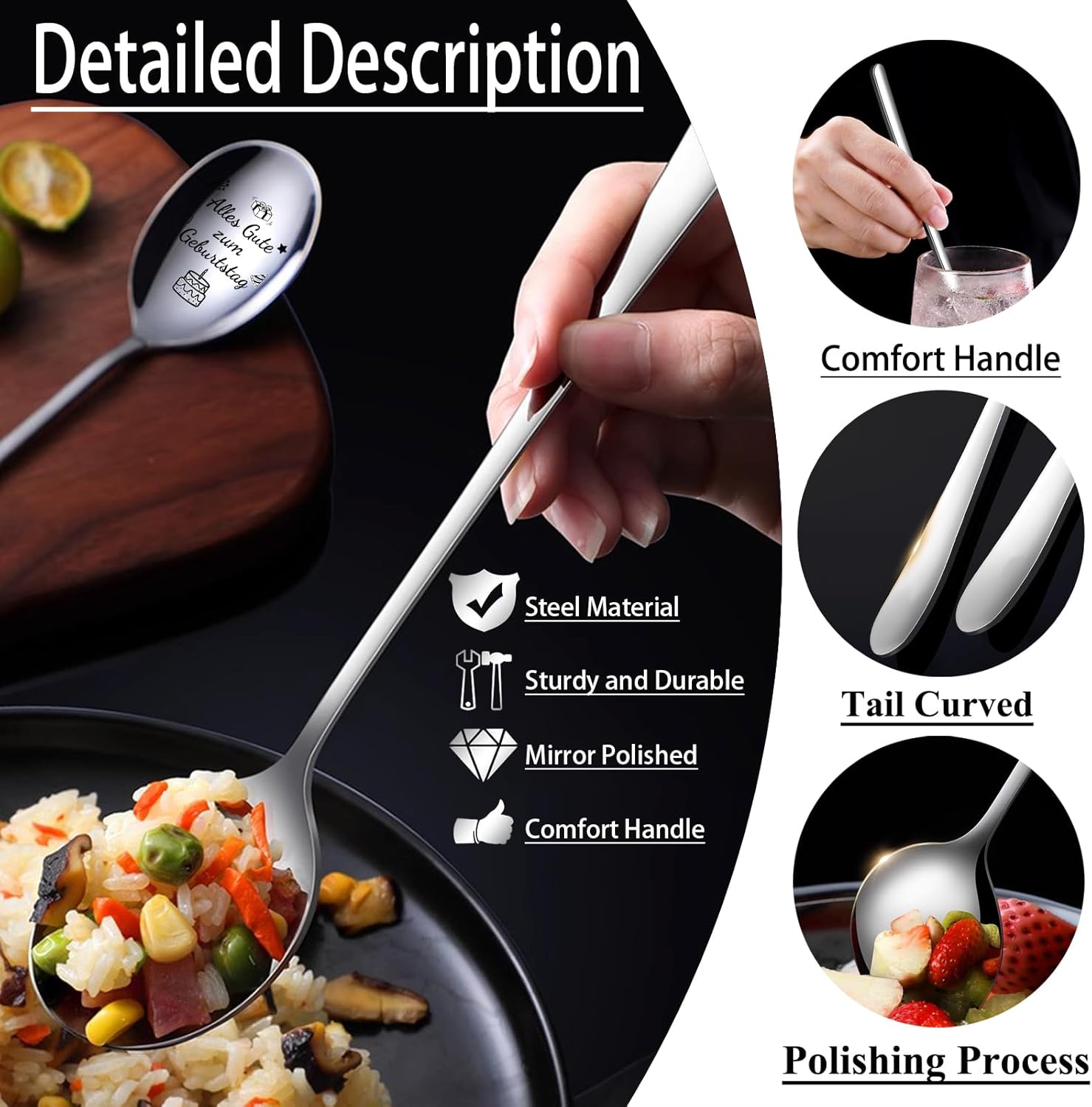 • Многократна употреба: Нашите лъжици от неръждаема стомана са подходящи за повечето чаши и халби и могат да се използват като лъжици за сладолед, чаени лъжички, лъжици за кафе, лъжици за десерт, лъжици за супа, лъжици за разбъркване на коктейли и други. Идеални за всеки повод за подарък; чудесни подаръци за татко, мама, дядо, баба, съпруга, син, дъщеря, гадже, приятелка, любовник и др.