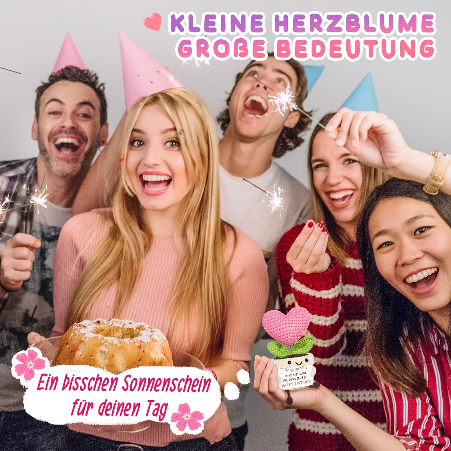 • ЧЕСТИТ 50-ТИ РОЖДЕН ДЕН Това сладко плетено цвете във формата на сърце от Giftasy е топъл подарък за 50-ти рожден ден - идеален за приятелки, сестри, майки или специални жени в живота. С веселото си лице и любящото послание „Честит 50-ти рожден ден!“, то носи радост и добро чувство в сърцето ден след ден.