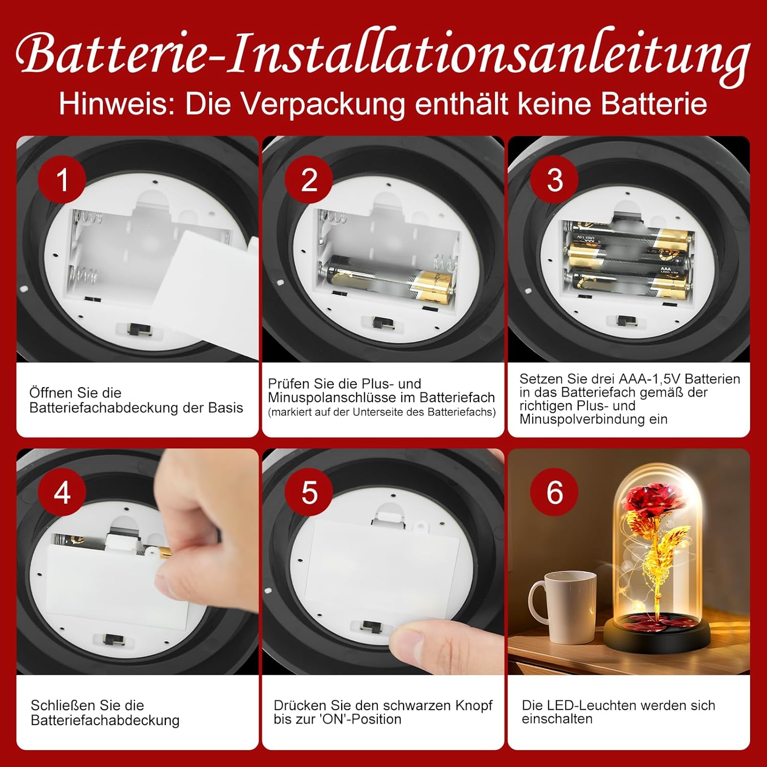 • Топла декорация: здравата основа и прозрачният и полупрозрачен стъклен капак с гладка повърхност не пожълтяват и са лесни за почистване. Вечната стъклена роза може да бъде поставена на вашия гардероб, библиотека, нощно шкафче и камина. LED розетките могат да излъчват топла светлина, за да се чувствате топло и комфортно у дома.