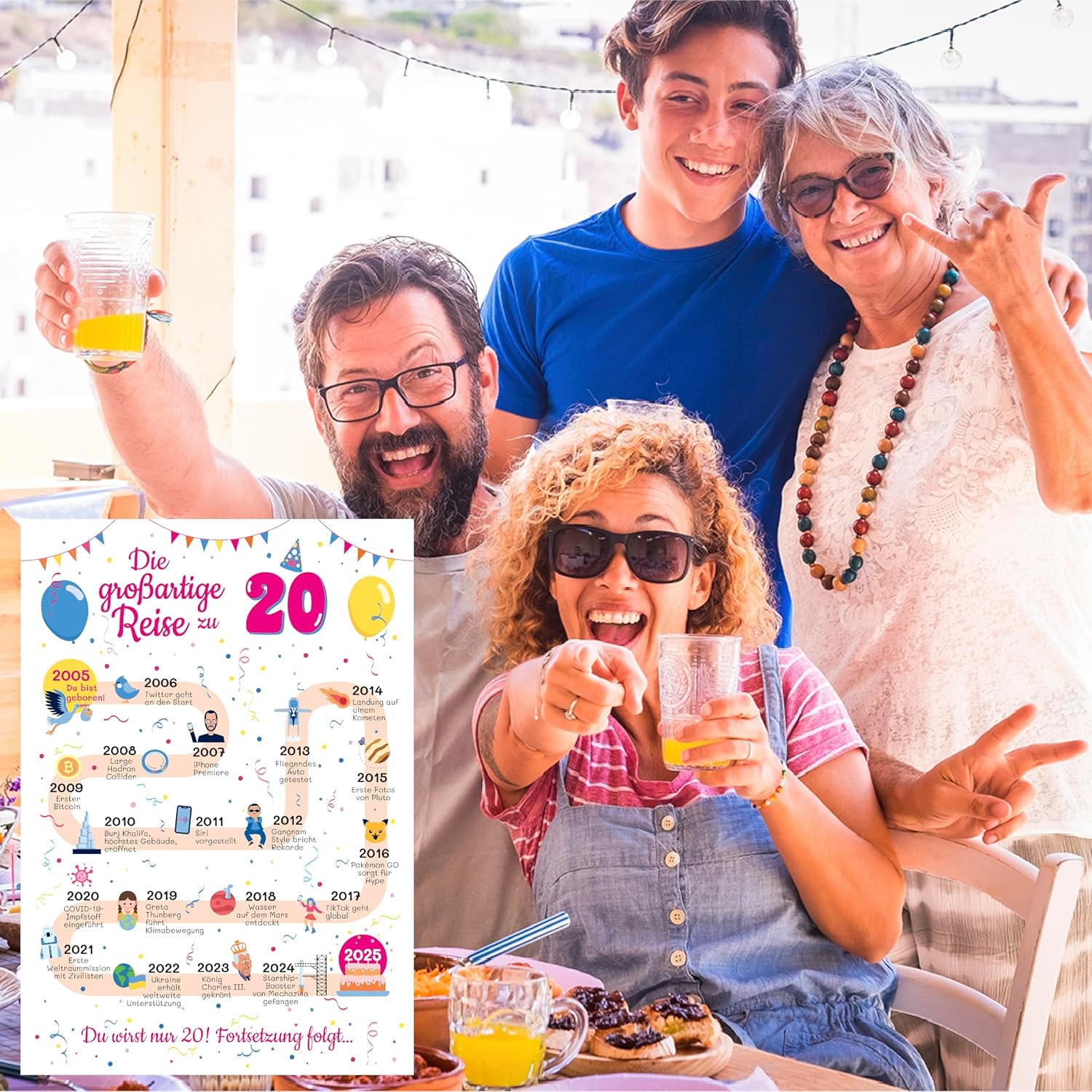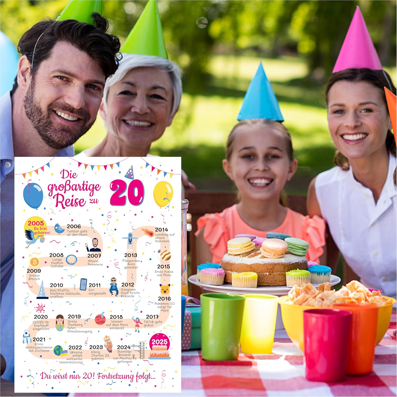 Подаръци за 20-ти рожден ден за жени и мъже - Подаръци за жени от 20 години - Красива картичка за рожден ден 20 мъже и жени - Декорация за рожден ден 20-ти рожден ден за мъже и жени - Картичка 2005