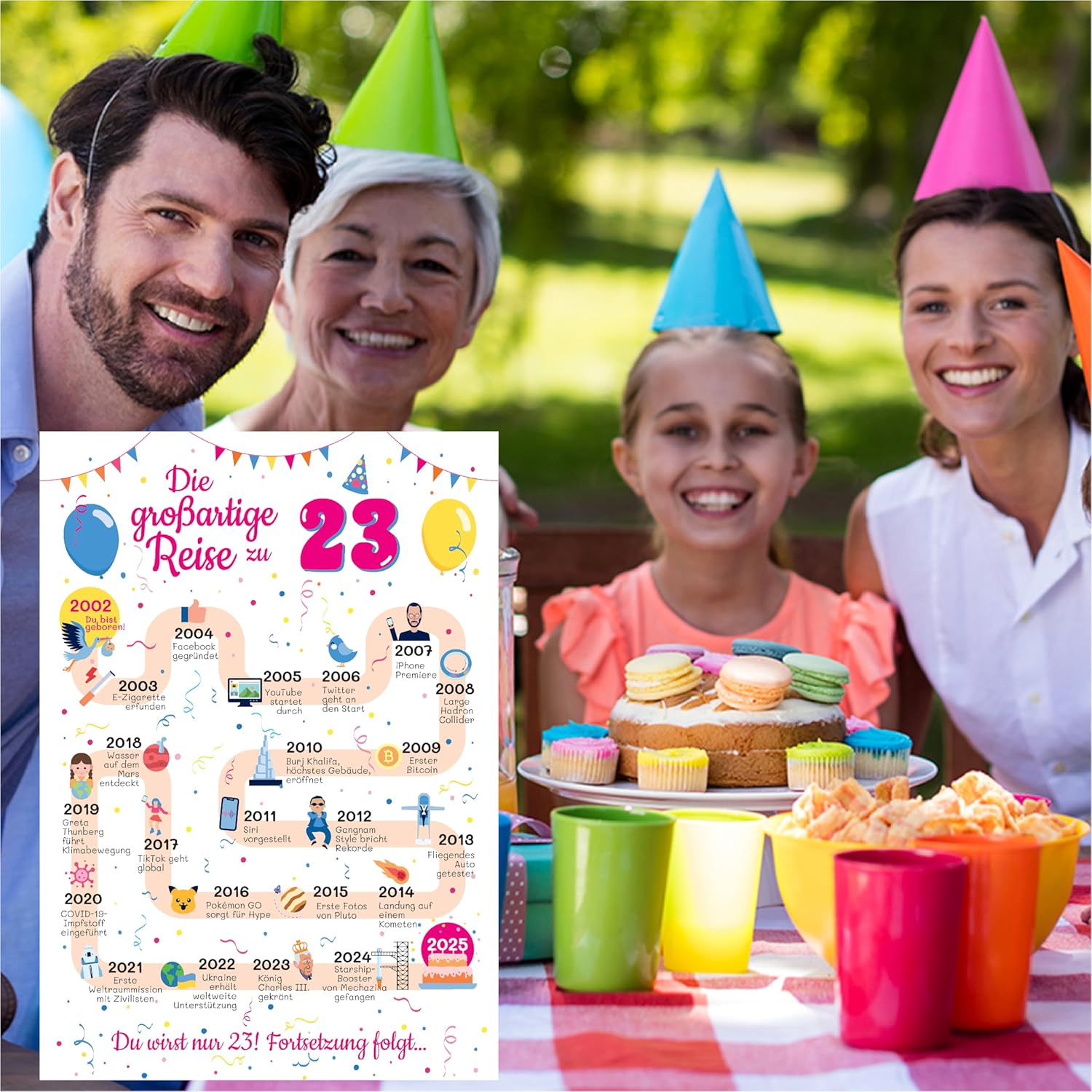 Подаръци за 23-ти рожден ден за жени и мъже - Подаръци за жени от 23 години - Красива картичка за рожден ден 23 за мъже и жени - Декорация за рожден ден за 23-ти рожден ден за мъже и жени - Картичка 2002