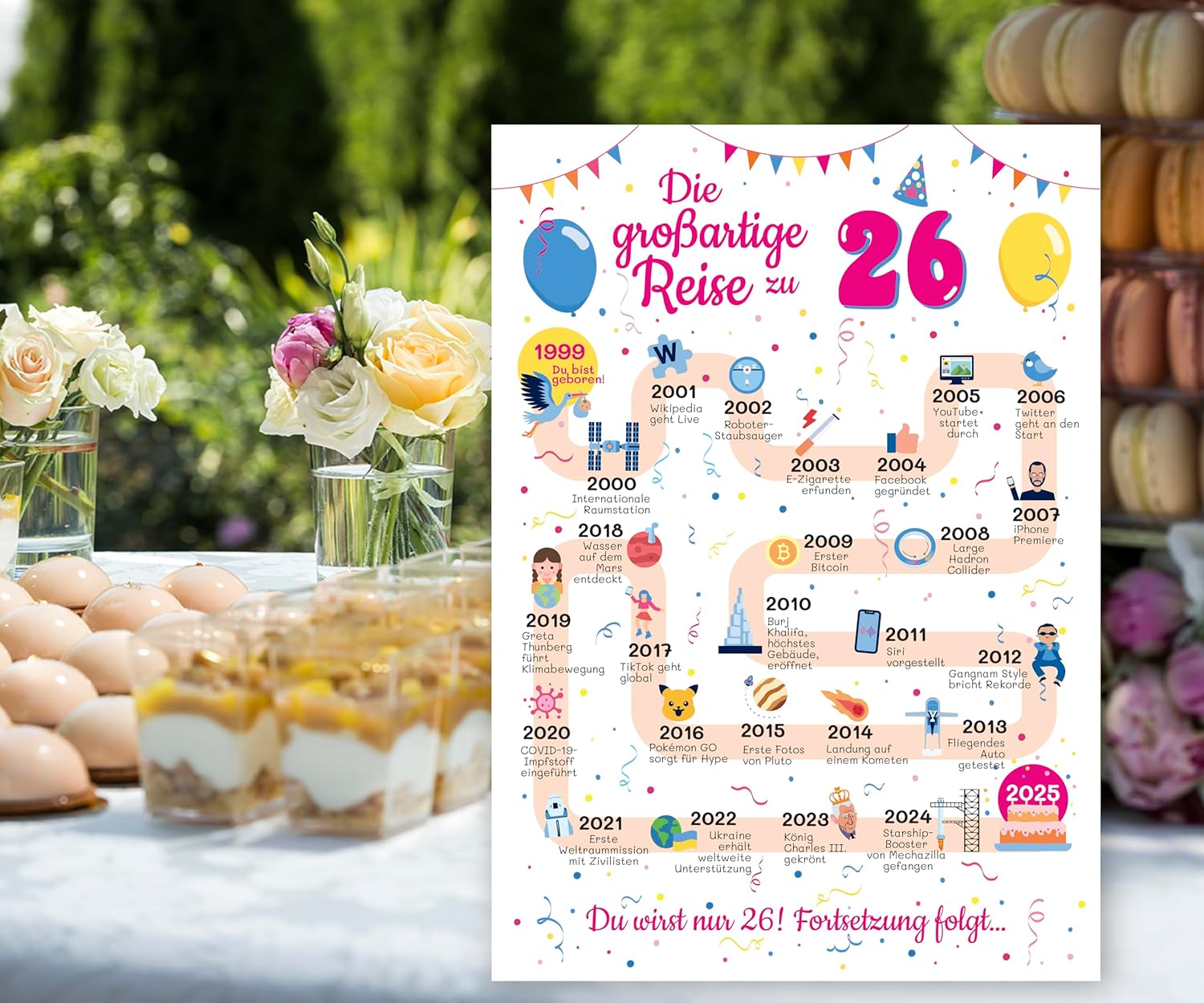 Подаръци за 26-ти рожден ден за жени и мъже - Подаръци за жени от 26 години - Красива картичка за рожден ден 26 за мъже и жени - Декорация за рожден ден за 26-ти рожден ден за мъже и жени - Картичка 1999