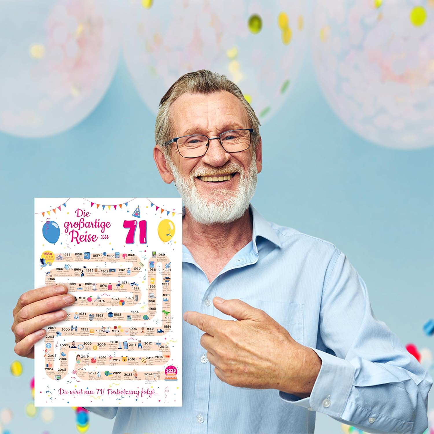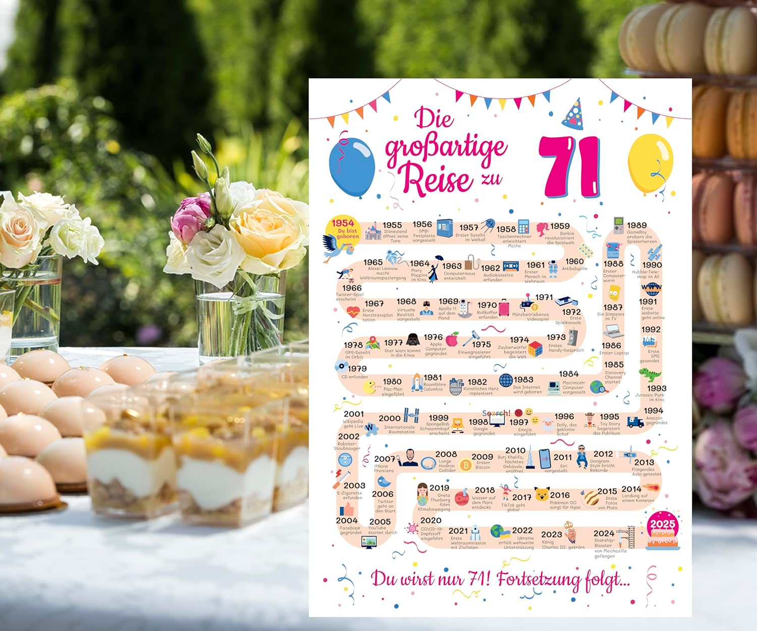 Подаръци за 71-ви рожден ден за жена и мъж - Подаръци за жени от 71 години - Красива картичка за рожден ден 71 мъж и жена - Декорация за рожден ден 71-ви рожден ден за мъже и жени - Картичка 1954