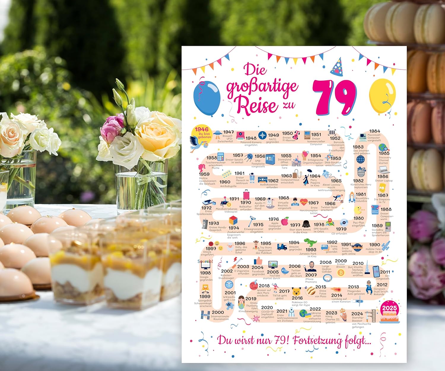 Подаръци за 79-ти рожден ден за жена и мъж - Подаръци за жени от 79 години - Красива картичка за рожден ден 79 за мъж и жена - Декорация за рожден ден 79-ти рожден ден за мъже и жени - Картичка 1946