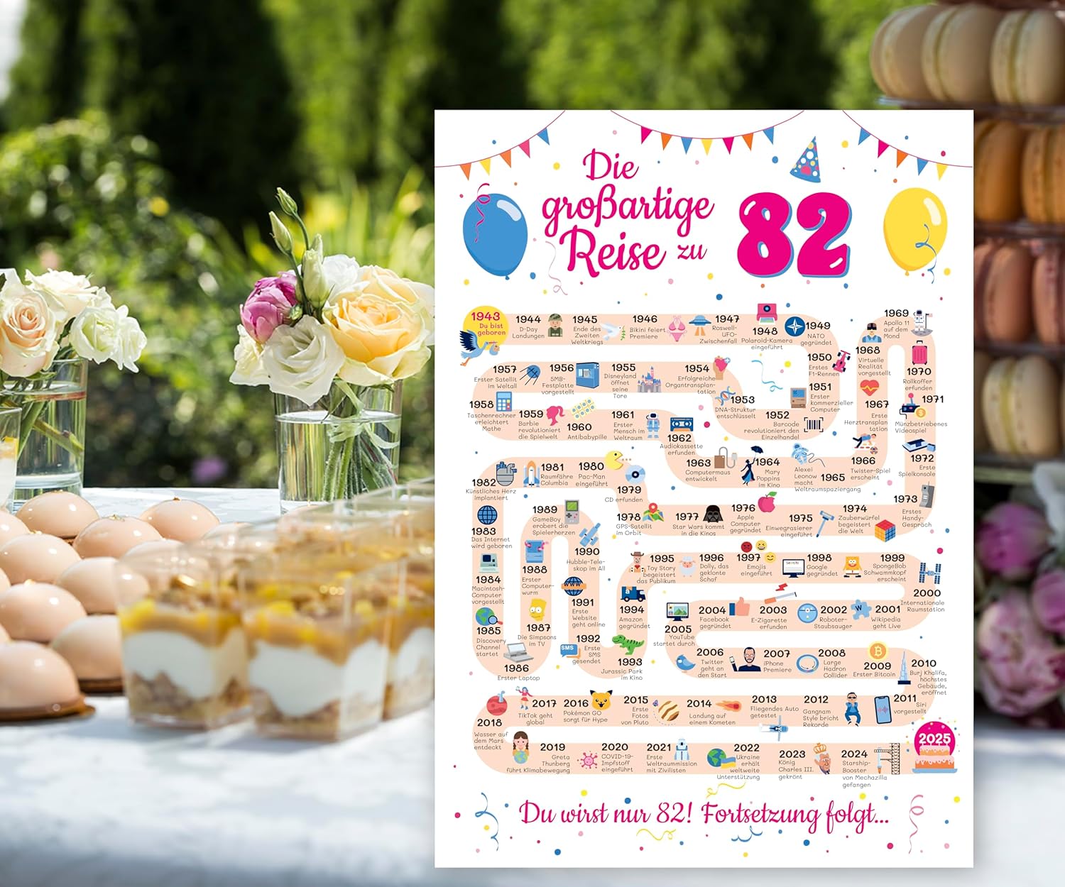 Подаръци за 82-ри рожден ден за жена и мъж - Подаръци за жени от 82 години - Красива картичка за рожден ден за 82-ри мъж и жена - Декорация за рожден ден за 82-ри рожден ден за мъже и жени - Картичка 1943