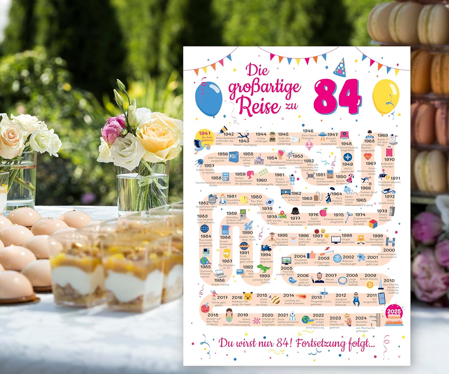 Подаръци за 84-ти рожден ден за жена и мъж - Подаръци за жени от 84 години - Красива картичка за рожден ден 84-ти мъж и жена - Декорация за рожден ден 84-ти рожден ден за мъже и жени - Картичка 1941
