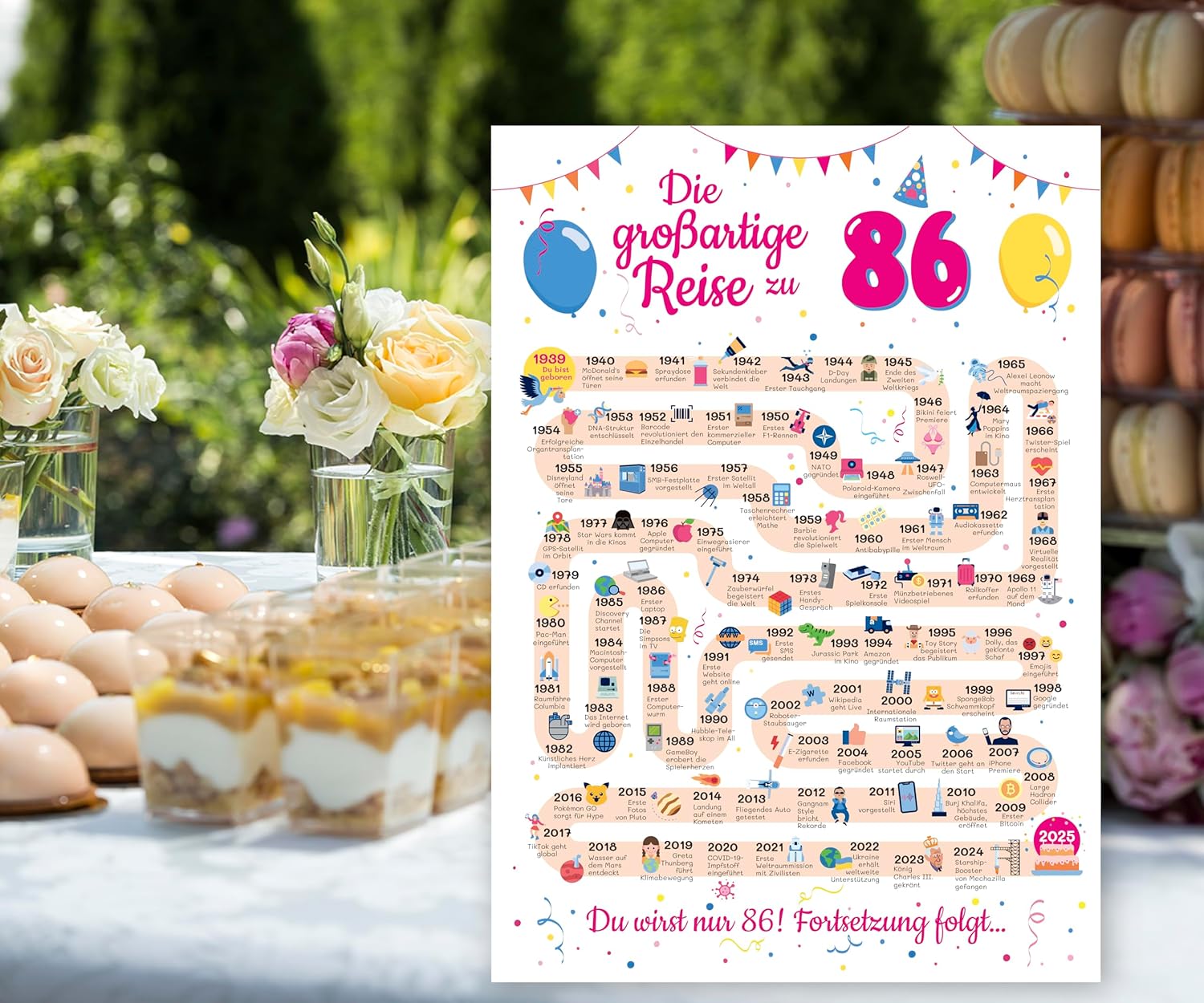 Подаръци за 86-ти рожден ден за жена и мъж - Подаръци за жени от 86 години - Красива картичка за рожден ден 86-ти мъж и жена - Декорация за рожден ден 86-ти рожден ден за мъже и жени - Картичка 1939