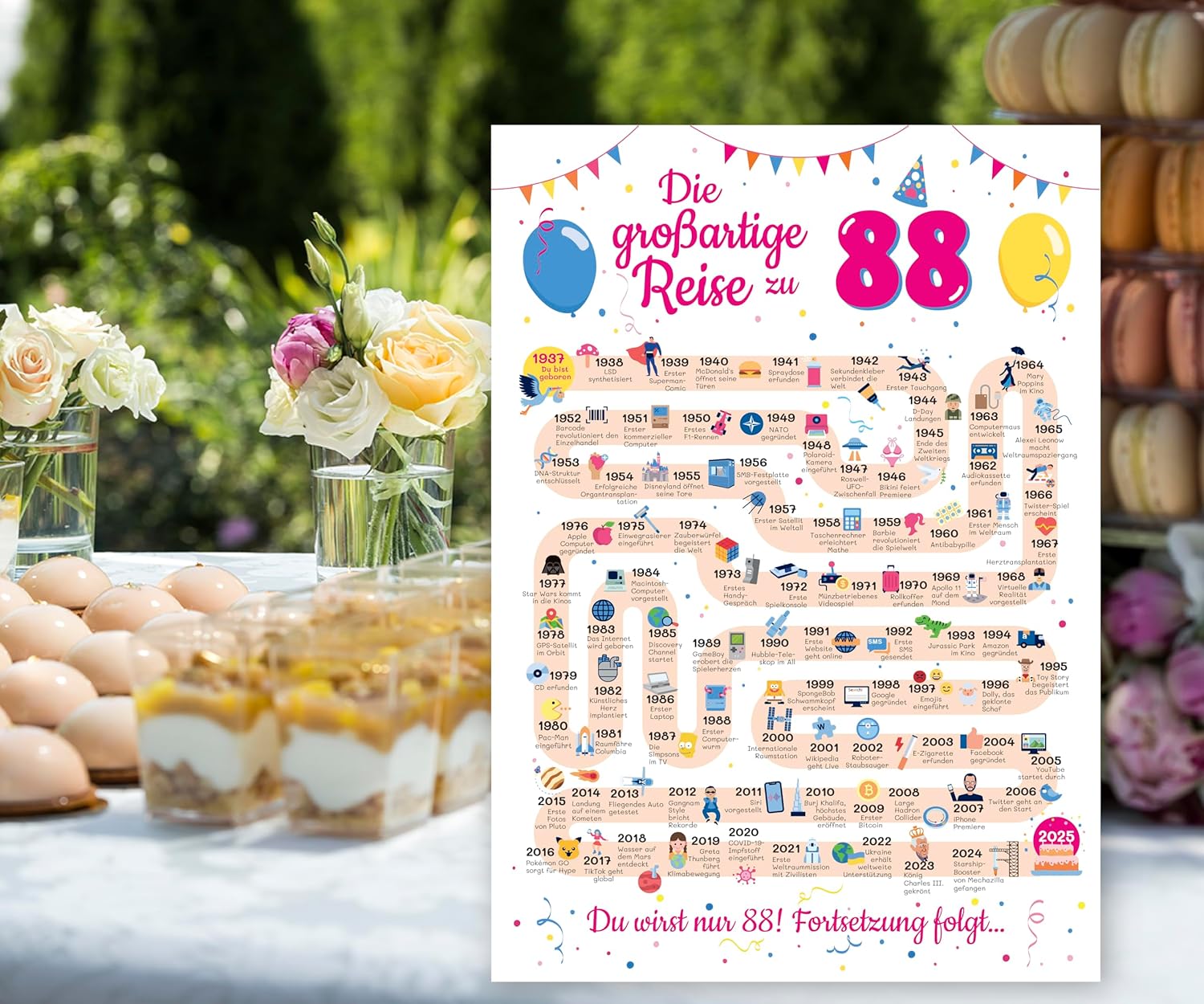 Подаръци за 88-ми рожден ден за жена и мъж - Подаръци за жени от 88 години - Красива картичка за рожден ден 88-ми мъж и жена - Декорация за рожден ден 88-ми рожден ден за мъже и жени - Картичка 1937
