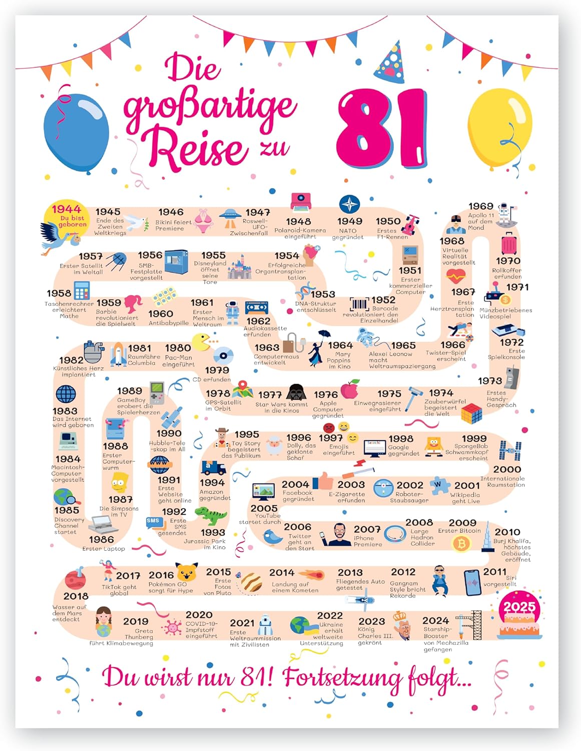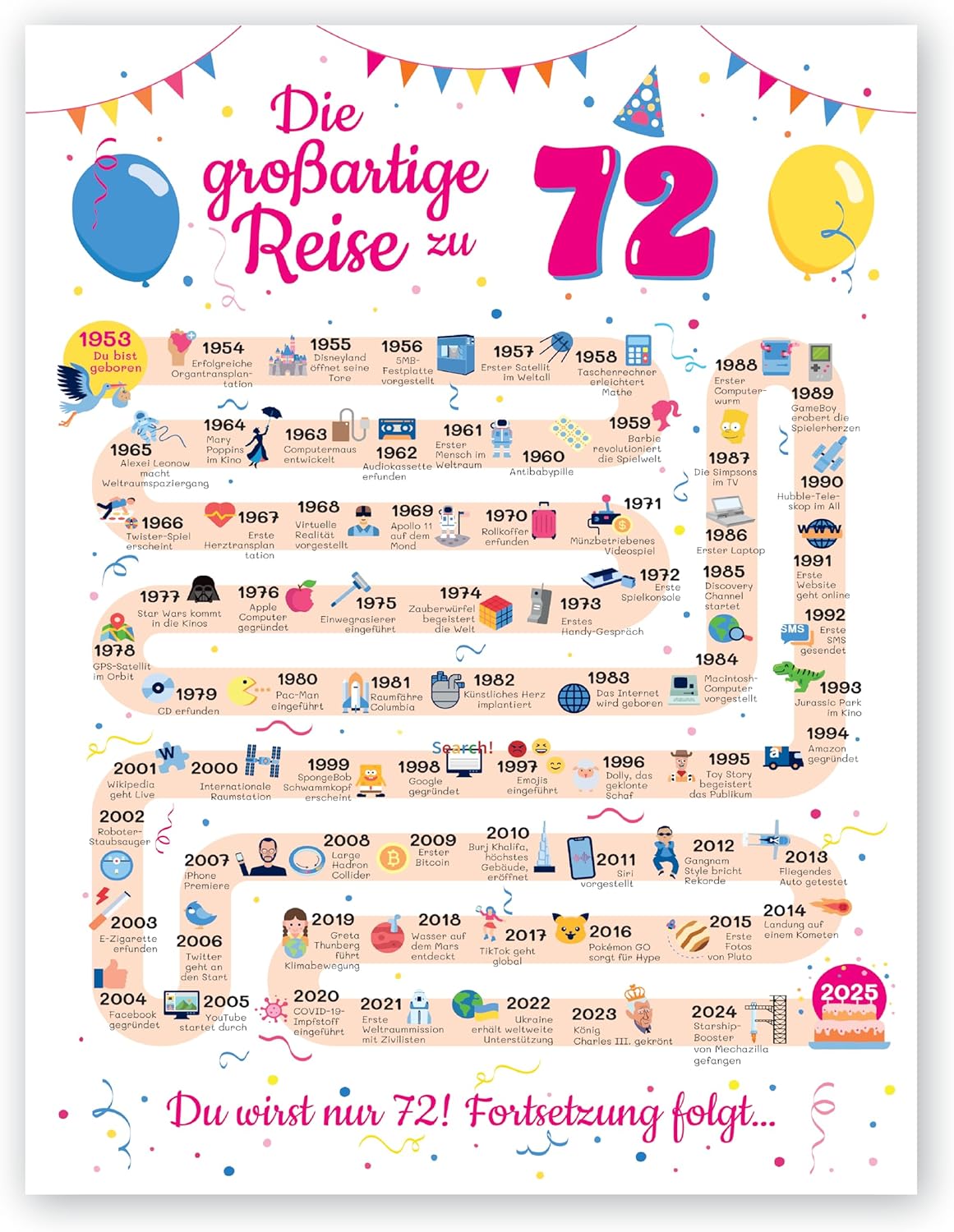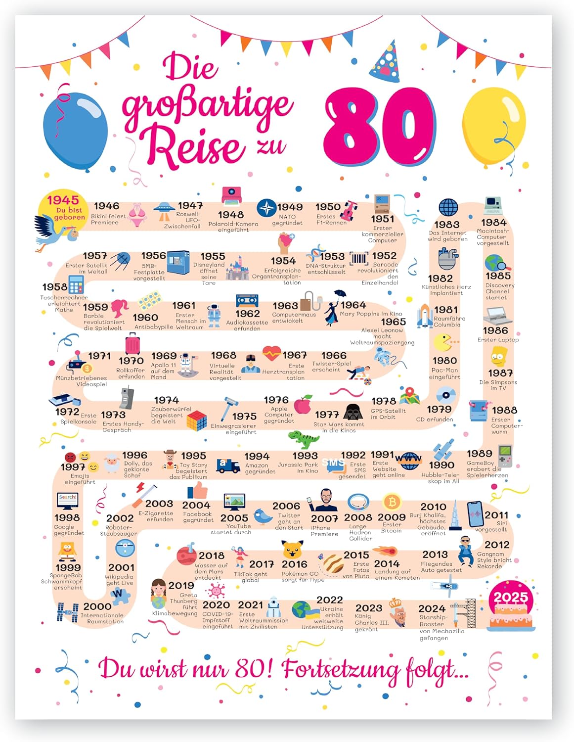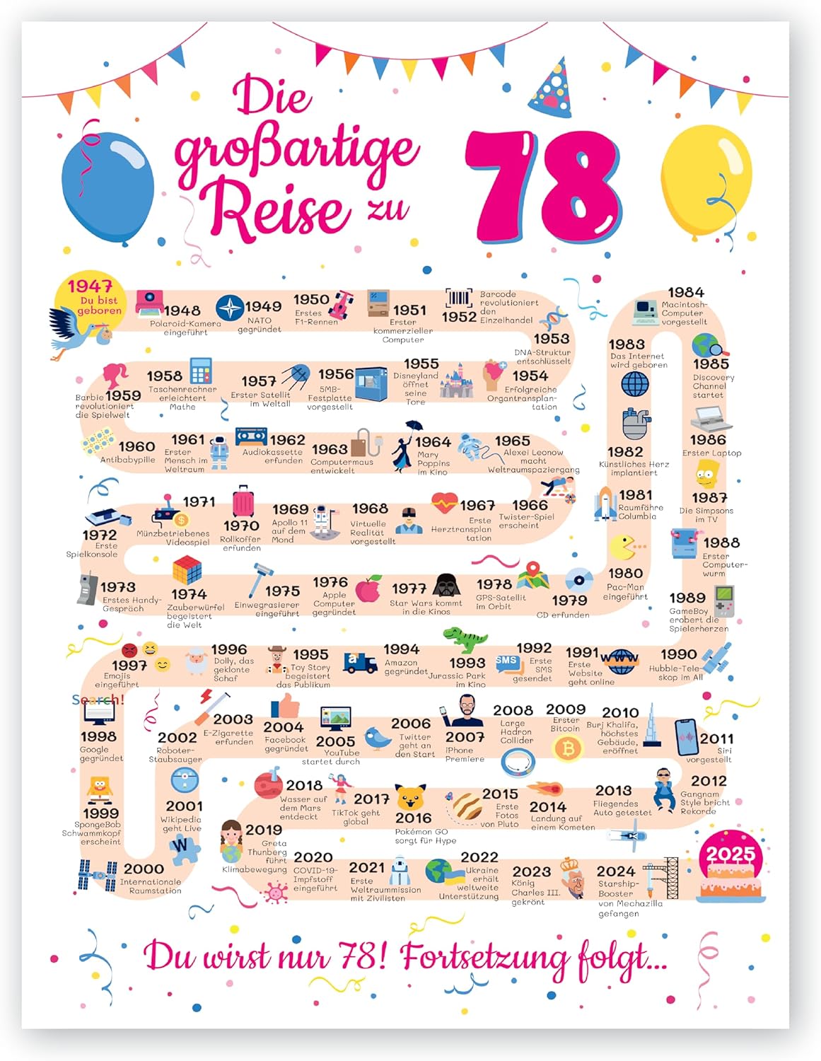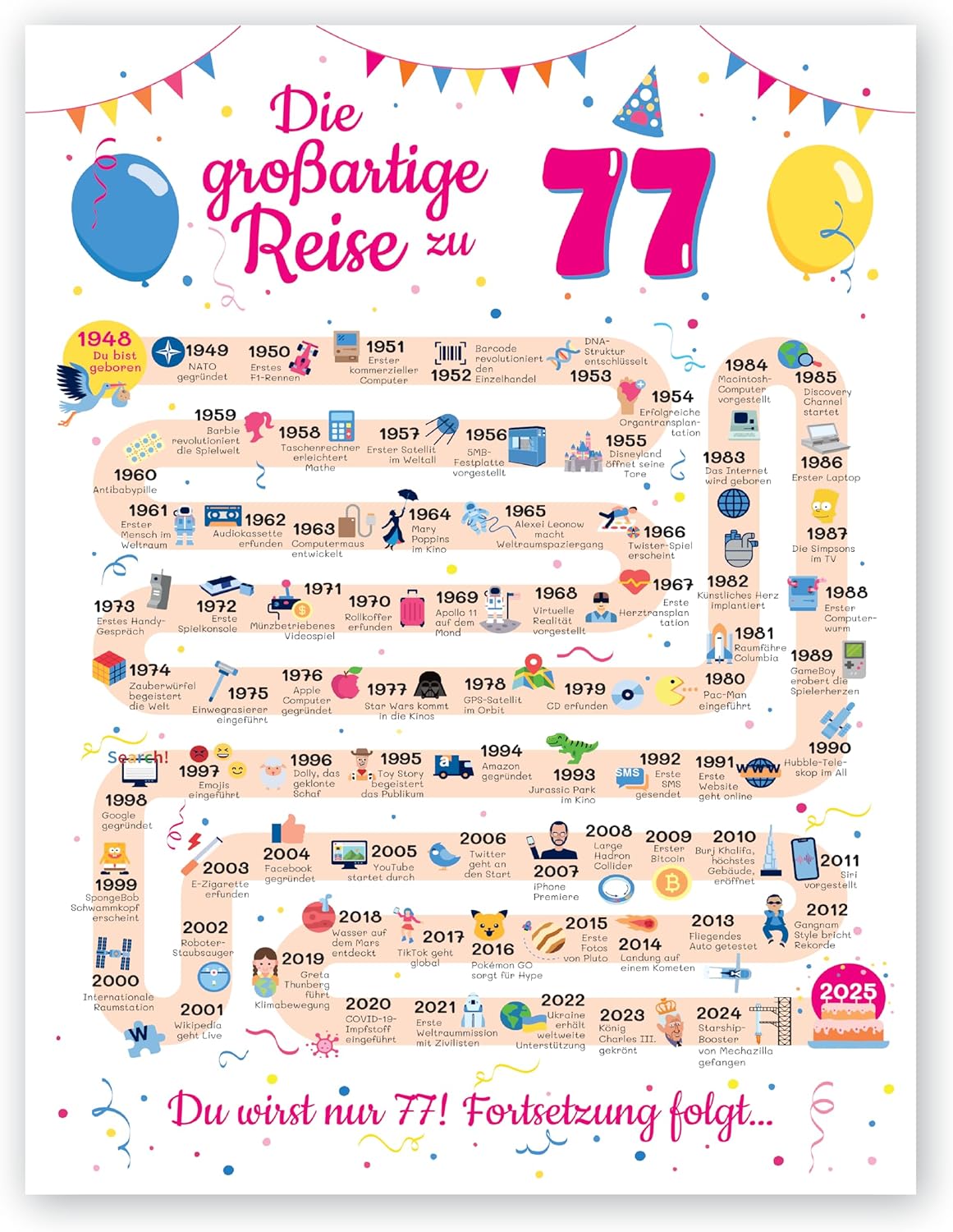• Подарък за всеки, който вече има всичко: Търсите ли специален подарък за жена, която празнува 70-ти рожден ден? Този плакат ще зарадва всеки, който цени спомените и носталгията. Той разказва за специални събития от всяка година на годишнината и гарантира радост, когато го подарявате. Идеален е както за жени над 70 години, така и за мъж, който празнува 70-ти рожден ден.