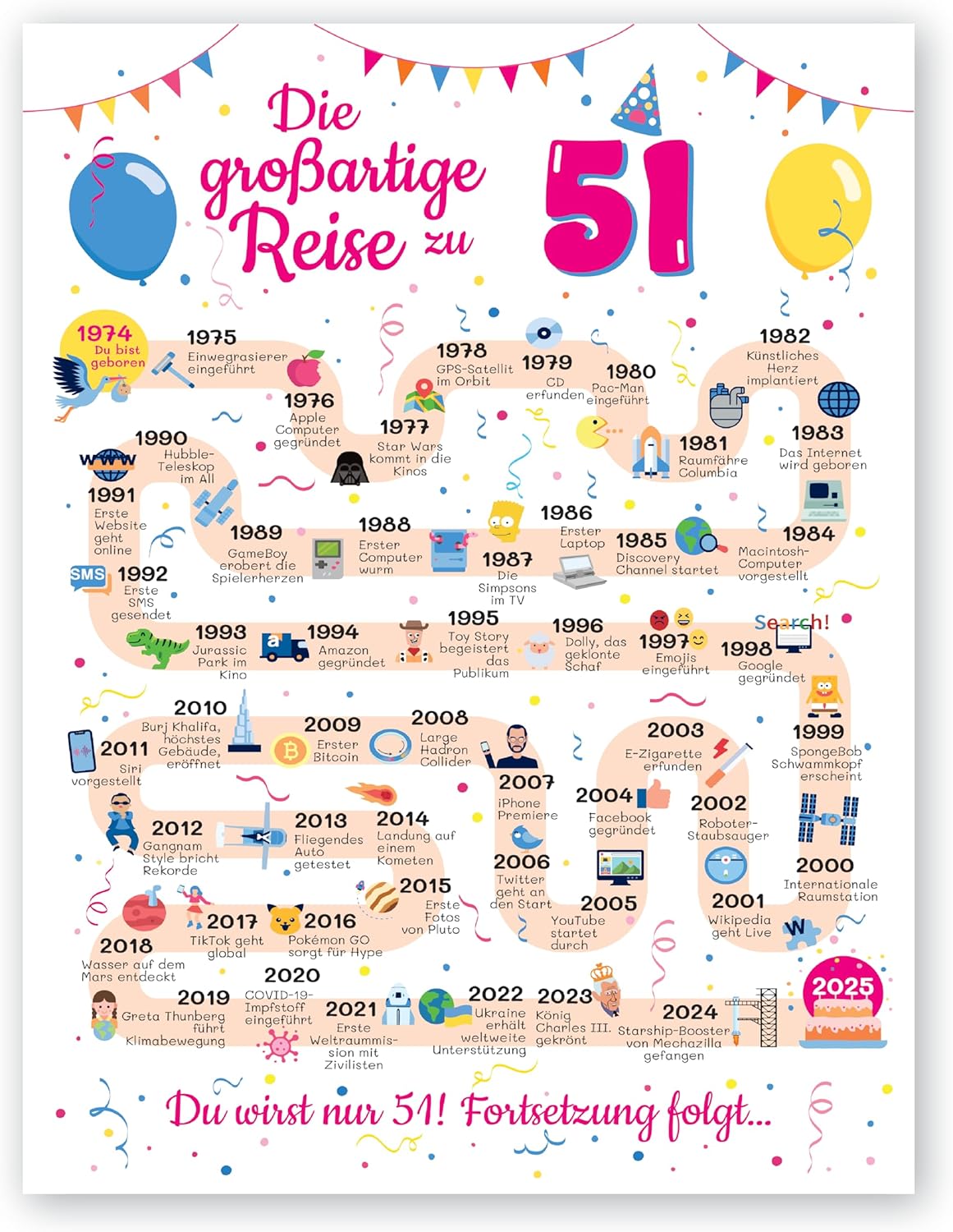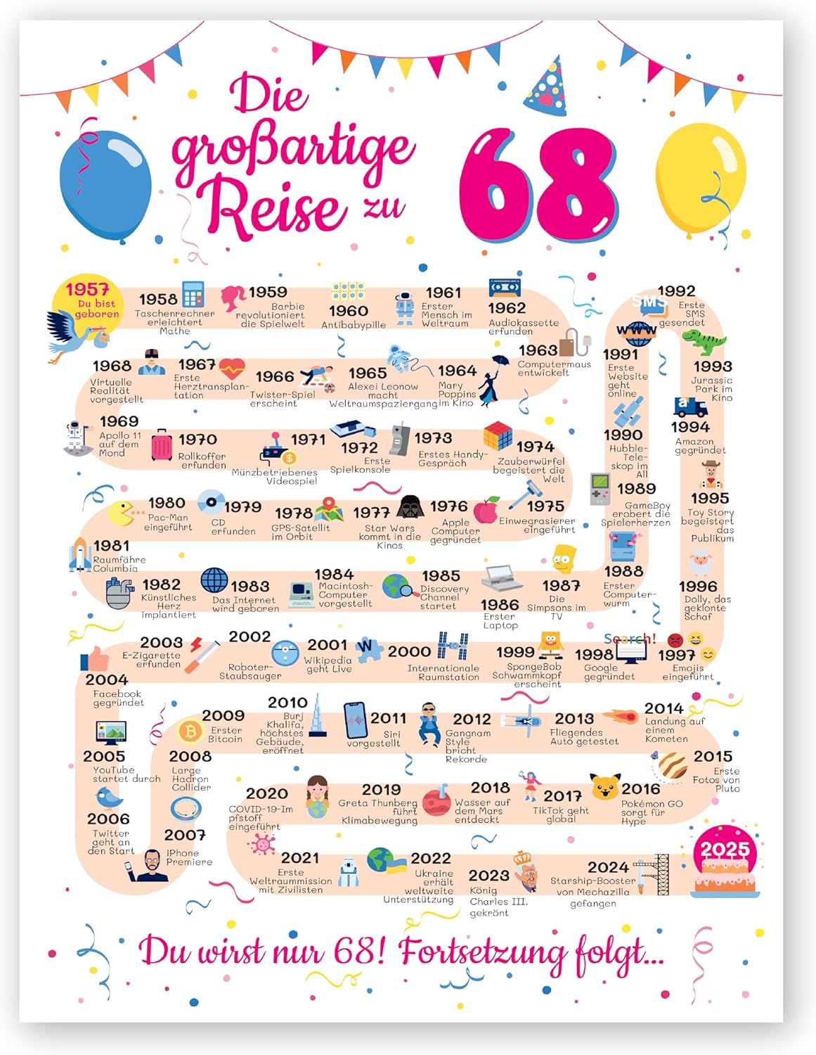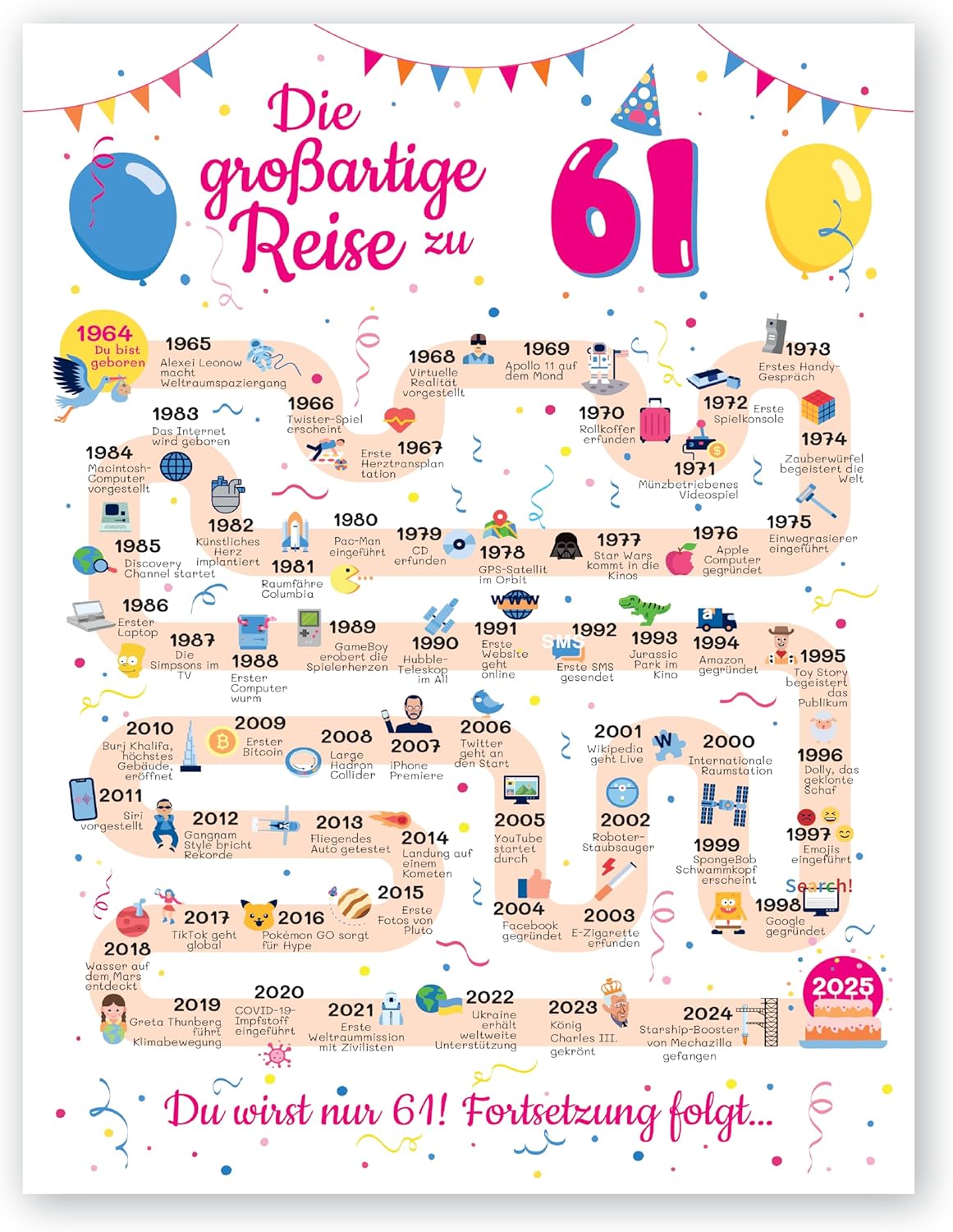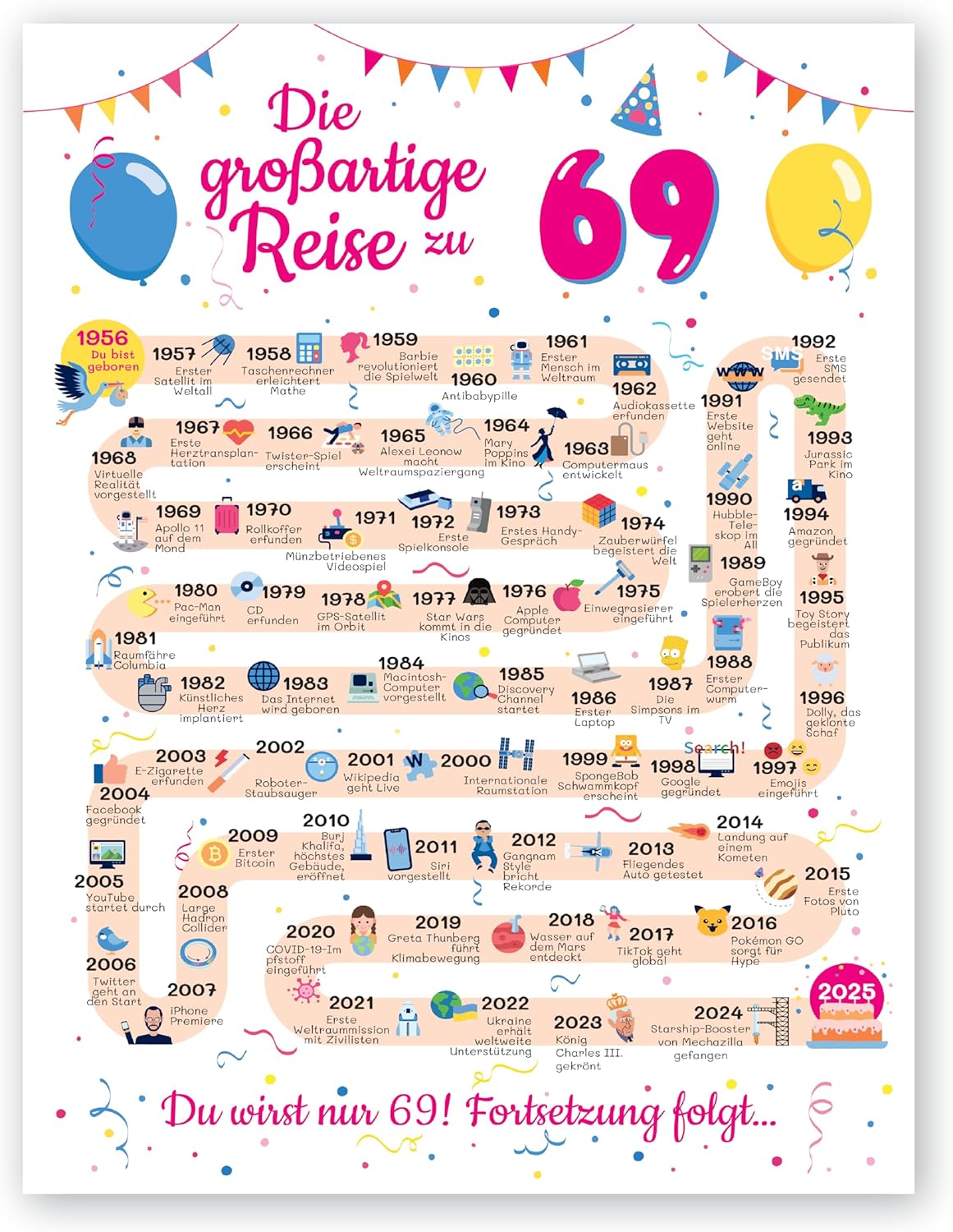 • Подарък за всеки, който вече има всичко: Търсите ли специален подарък за жена, която празнува 70-ти рожден ден? Този плакат ще зарадва всеки, който цени спомените и носталгията. Той разказва за специални събития от всяка година на годишнината и гарантира радост, когато го подарявате. Идеален е както за жени над 70 години, така и за мъж, който празнува 70-ти рожден ден.