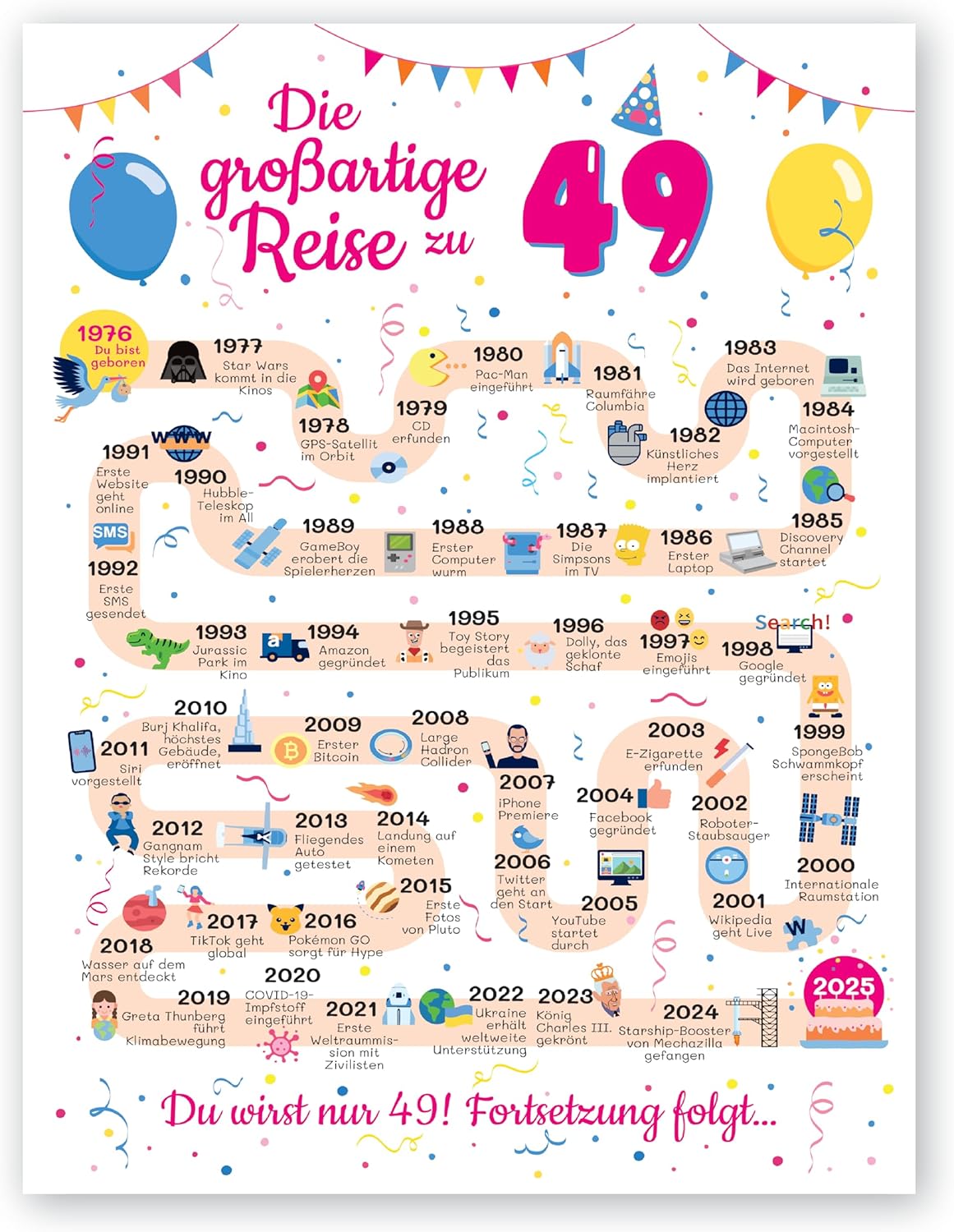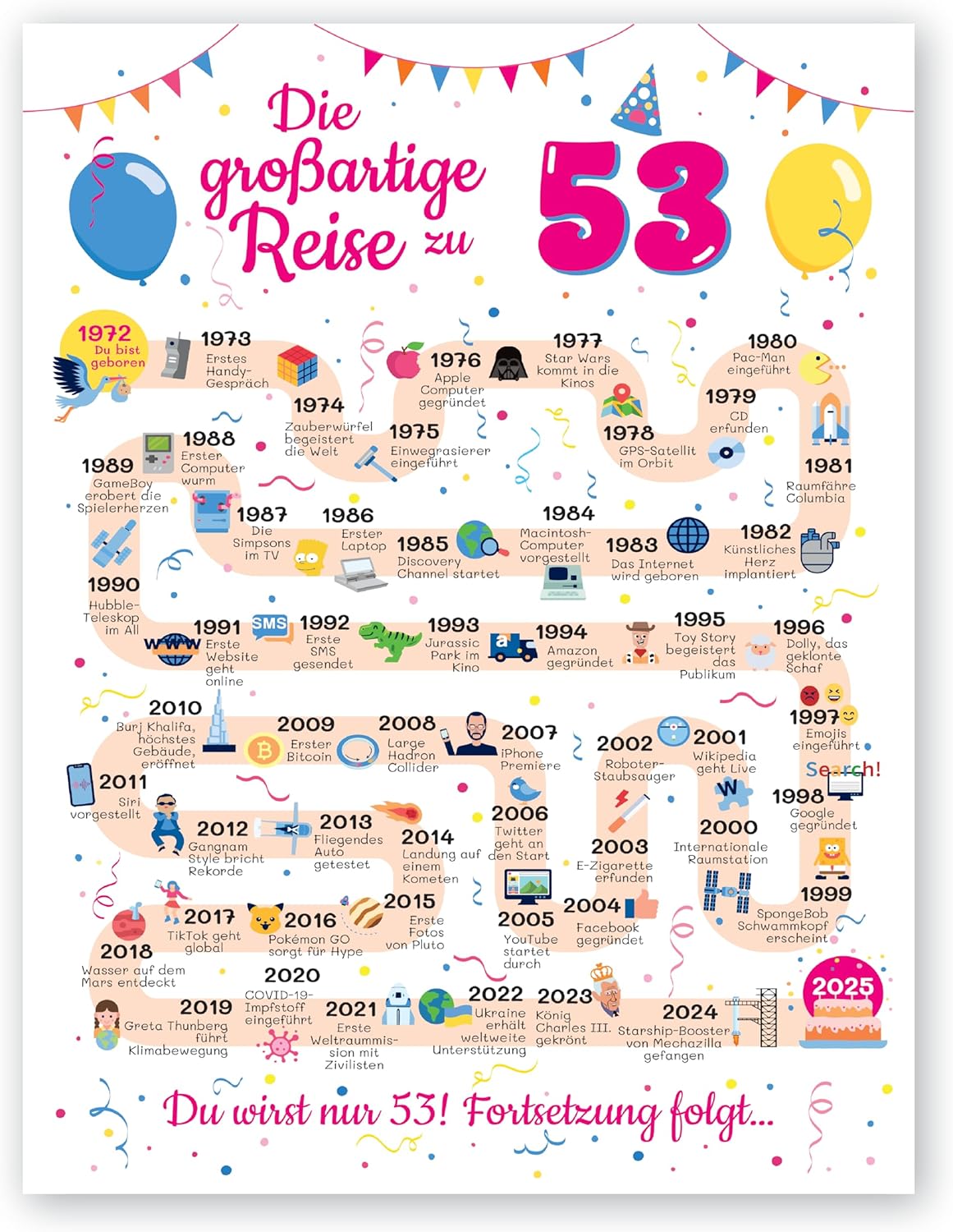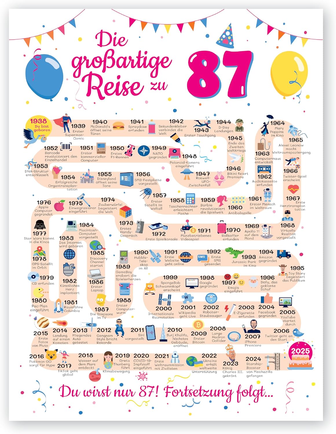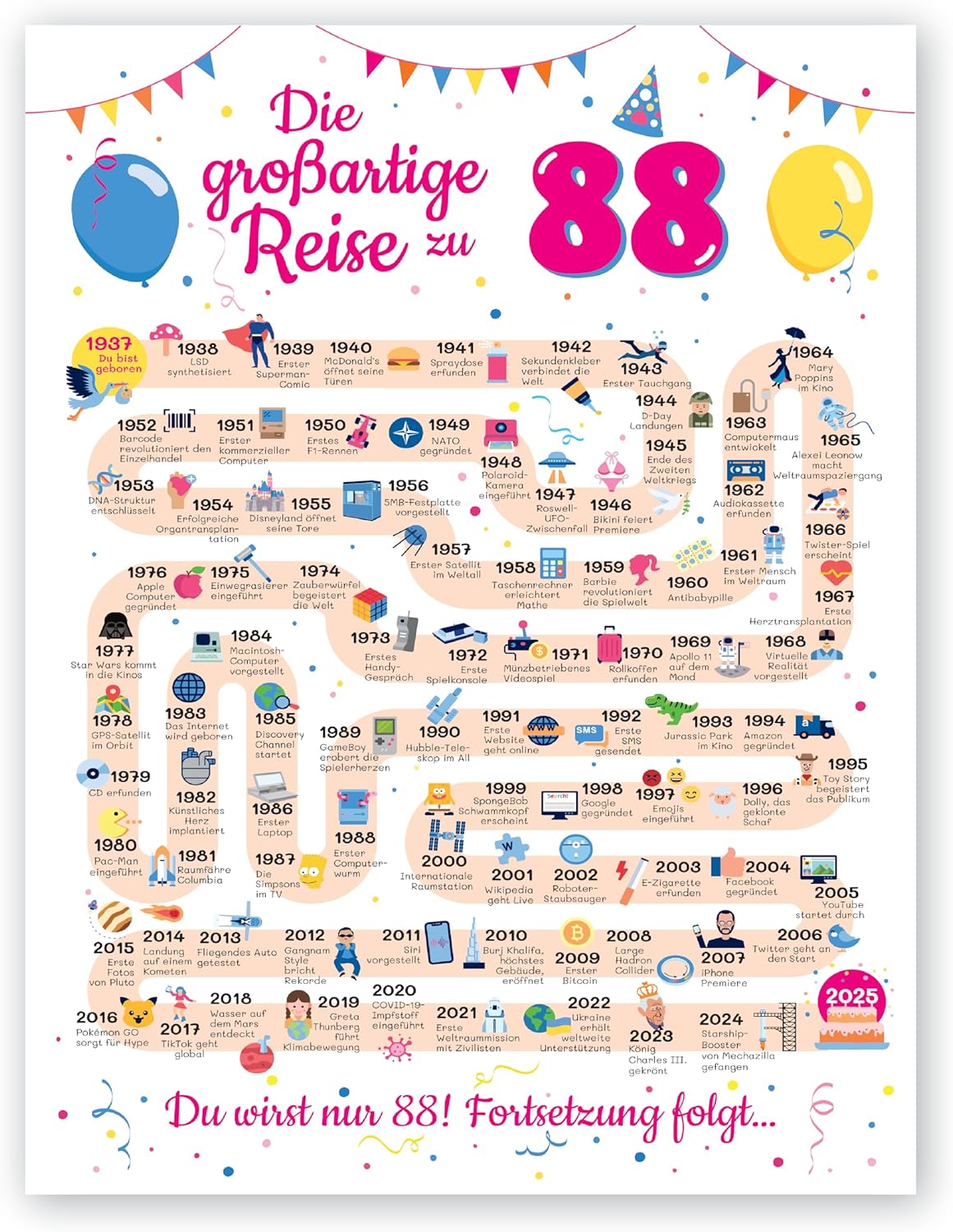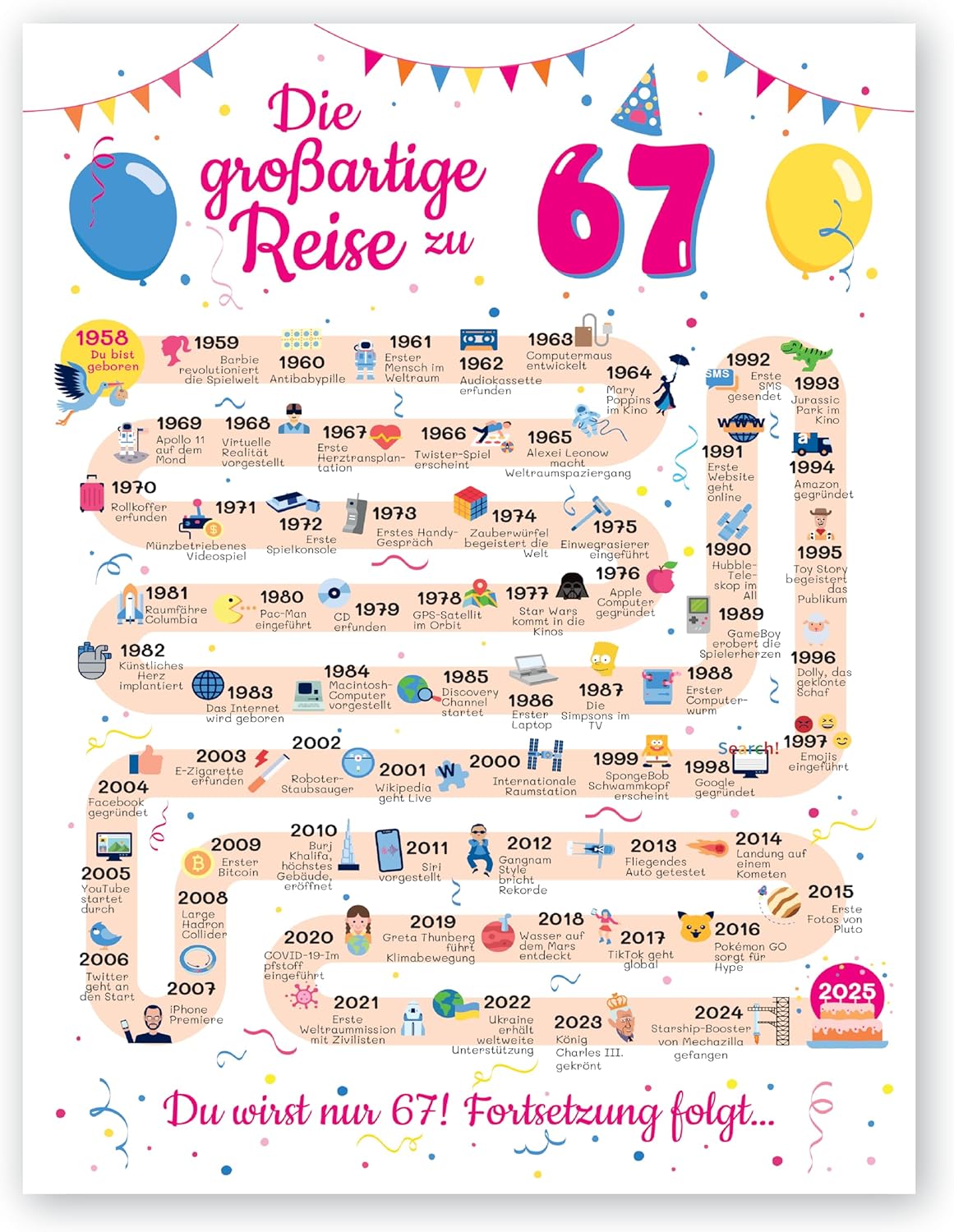 • Подарък за всеки, който вече има всичко: Търсите ли специален подарък за жена, която празнува 70-ти рожден ден? Този плакат ще зарадва всеки, който цени спомените и носталгията. Той разказва за специални събития от всяка година на годишнината и гарантира радост, когато го подарявате. Идеален е както за жени над 70 години, така и за мъж, който празнува 70-ти рожден ден.