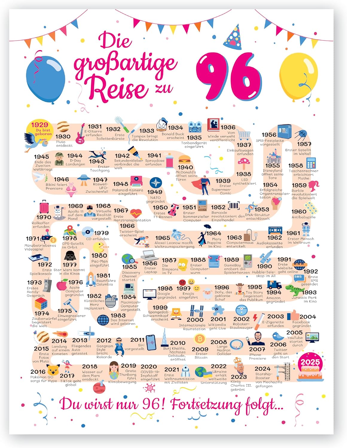 Подаръци за 96-ти рожден ден за жена и мъж - Подаръци за жени от 96 години - Красива картичка за рожден ден 96 мъж и жена - Декорация за рожден ден 96-ти рожден ден за мъже и жени - Картичка 1929