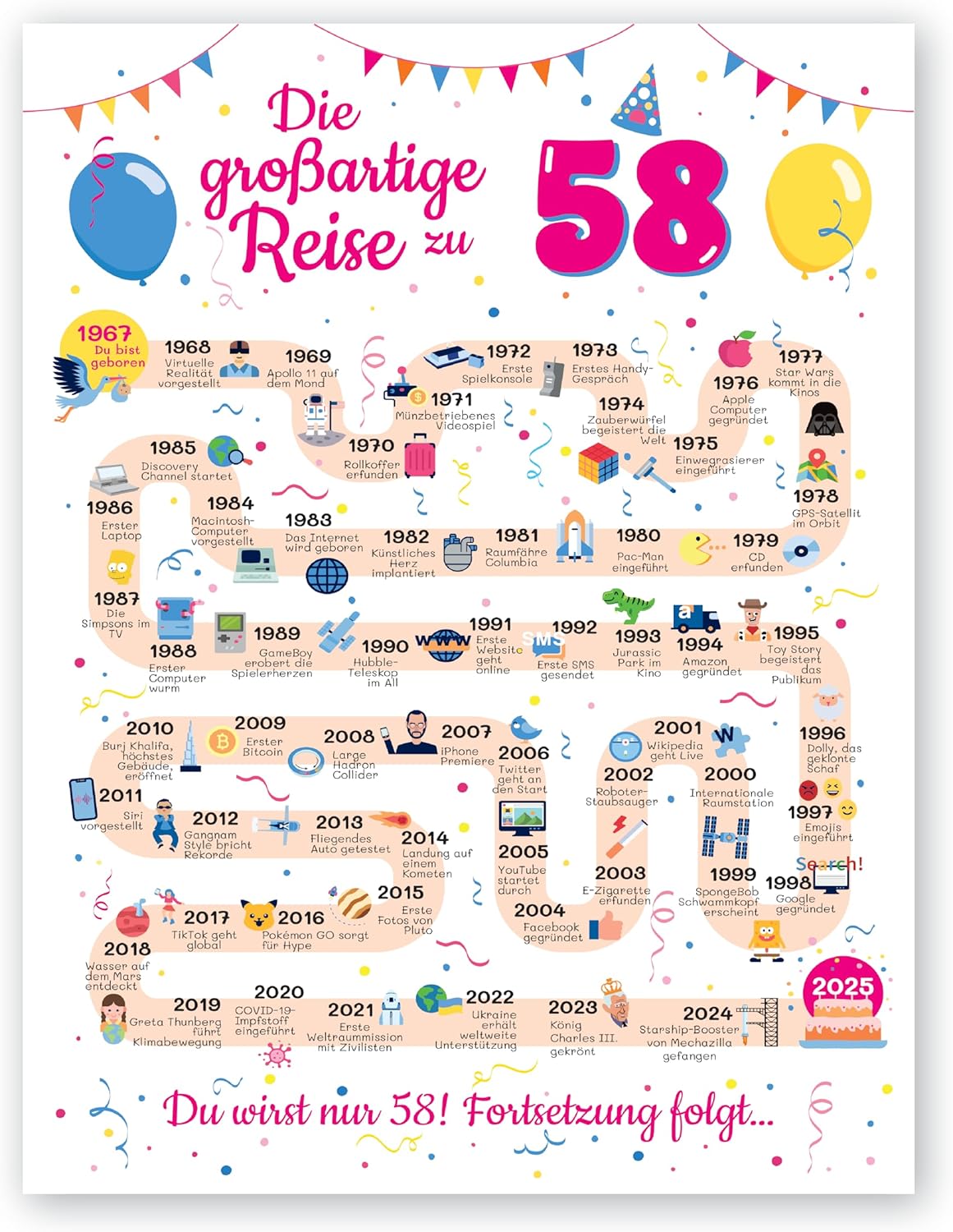 • [Формат A4 - Без рамка] Картичката за 70-годишнина на жената „Великото пътуване до 70-те“ (1955) е носталгичен подарък, отпечатан и ламиниран на професионално оборудване - за брилянтни цветове и дълга издръжливост. Побира се във всяка фоторамка с формат A4. Картичката за 70-годишнина на мъжа се доставя сигурно в здрав картонен плик. Тази картичка за 70-годишнина на жената може да се използва и като стилна декорация за стена.