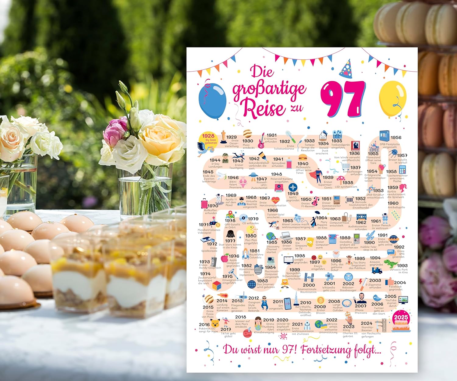 Подаръци за 97-ми рожден ден за жена и мъж - Подаръци за жени от 97 години - Красива картичка за рожден ден 97 мъж и жена - Декорация за рожден ден 97-ми рожден ден за мъже и жени - Картичка 1928