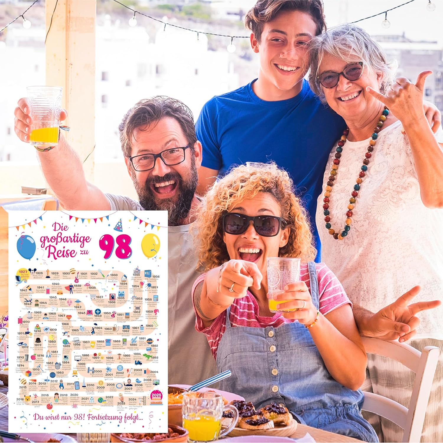 Подаръци за 98-ми рожден ден за жена и мъж - Подаръци за жени от 98 години - Красива картичка за рожден ден 98 мъж и жена - Декорация за рожден ден 98-ми рожден ден за мъже и жени - Картичка 1927