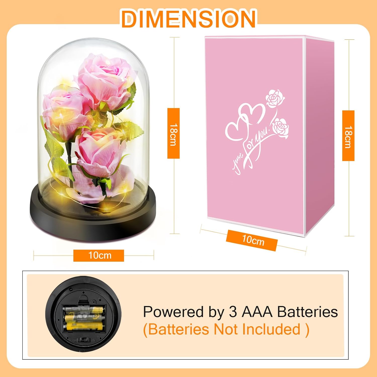 Bunte LED-Lichtshow, Rose ist um ein LED-Streifenlicht gewickelt, angetrieben durch 3 AAA-Strom (nicht im Lieferumfang enthalten), LED-Streifenlicht, helles, warmweißes Licht. LED-Rosenlicht kann tagsüber und nachts für Heimdekorationen verwendet werden oder eine romantische Atmosphäre schaffen. LED-Glasrose ist ein Symbol für Wertschätzung, beste Wünsche, ewige Liebe, Leidenschaft und Romantik.