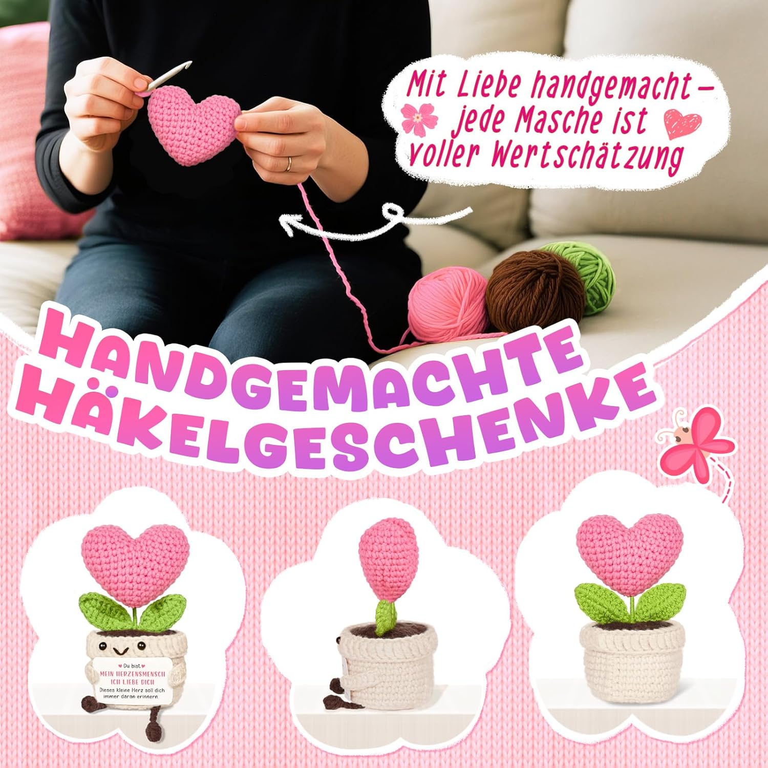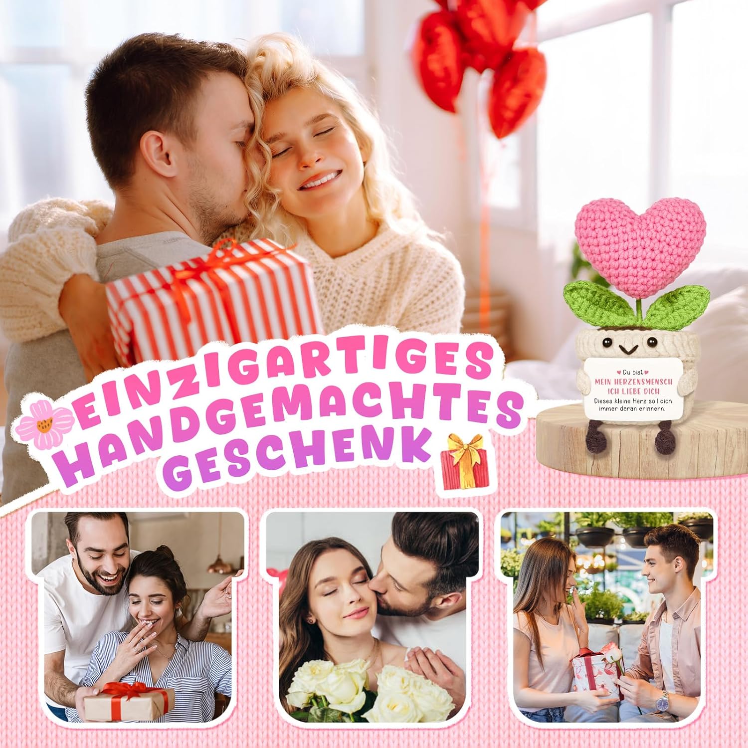 • Ръчно изработено и уникално: Всяко цвете в сърце е внимателно изплетено на ръка с мека вълна и грижовни детайли - включително красиви зелени листа. Всяко отделно цвете е наистина уникално и показва: вие сте нещо много специално.