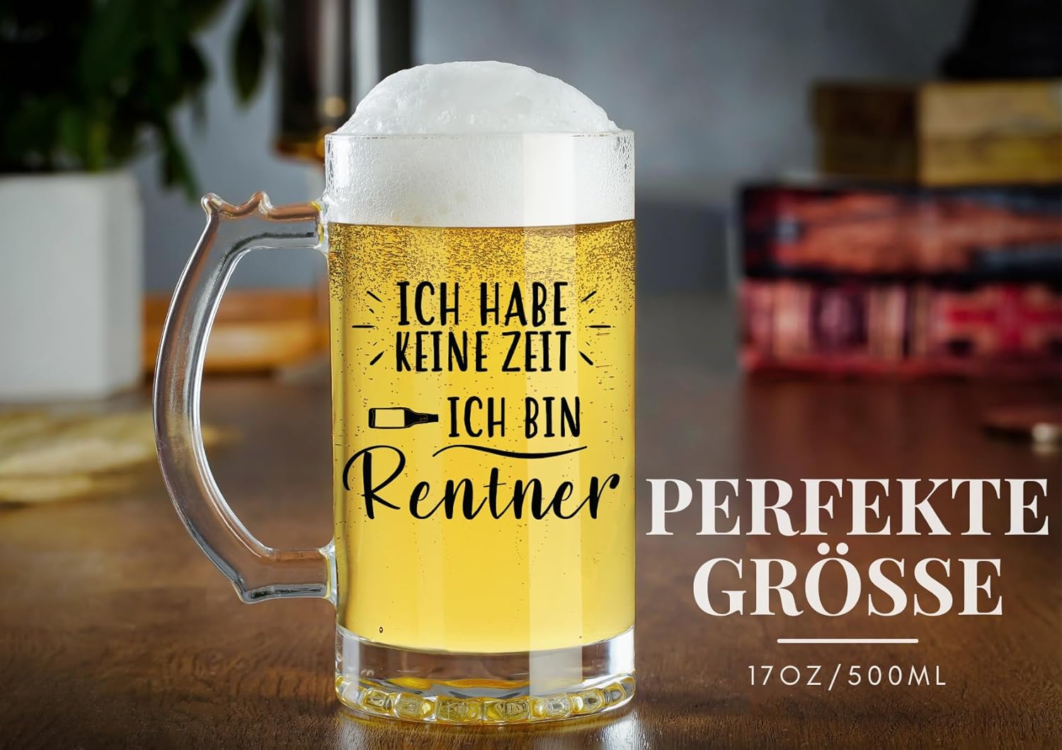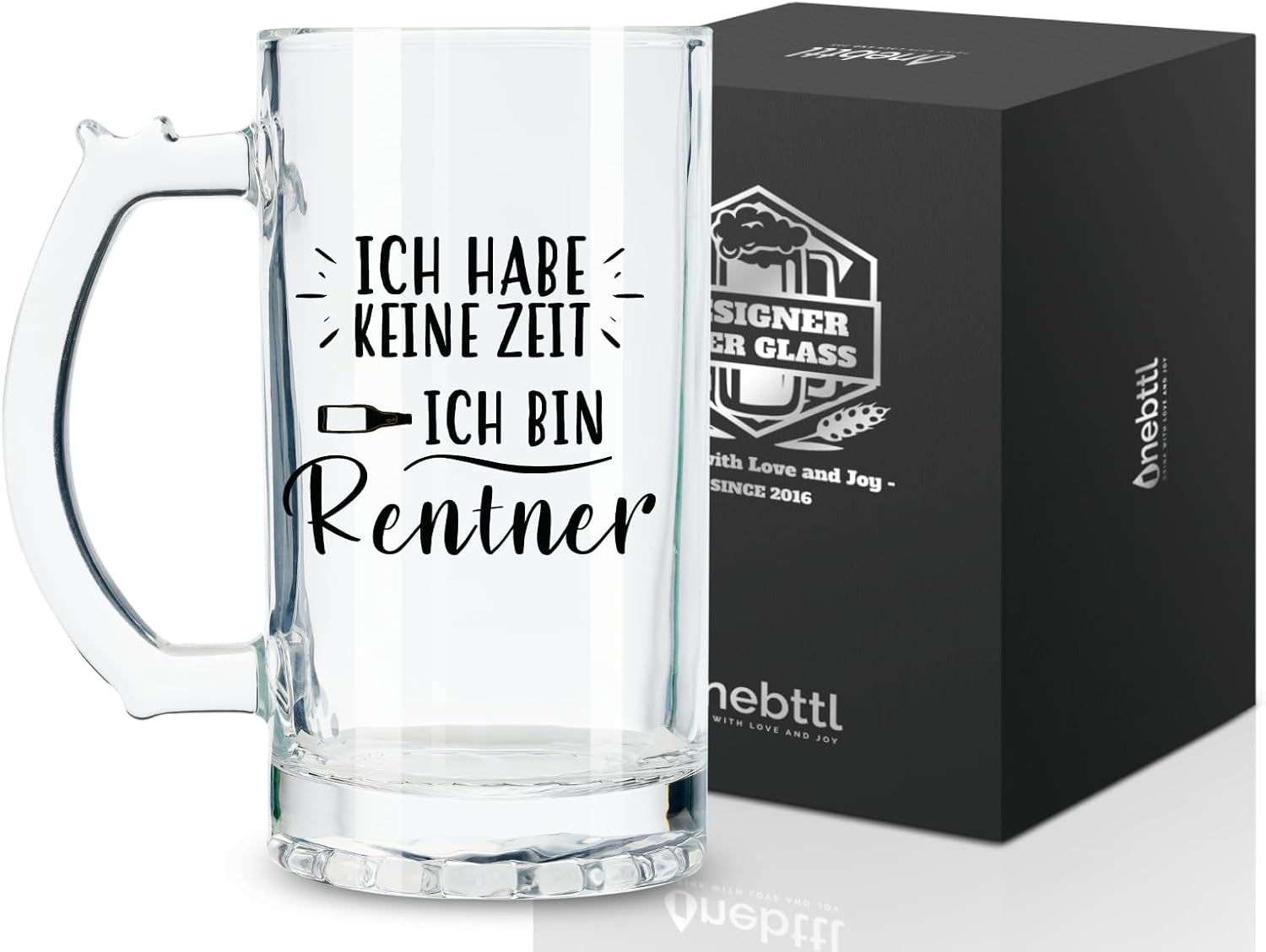 Подаръци за пенсионери Onebettl за мъже, Подаръци за пенсионери - халба за бира, Чаша за пенсионери за бира 500 мл (17 oz) за татко, шеф, полицай, учител, баща, готова за подаръчна кутия