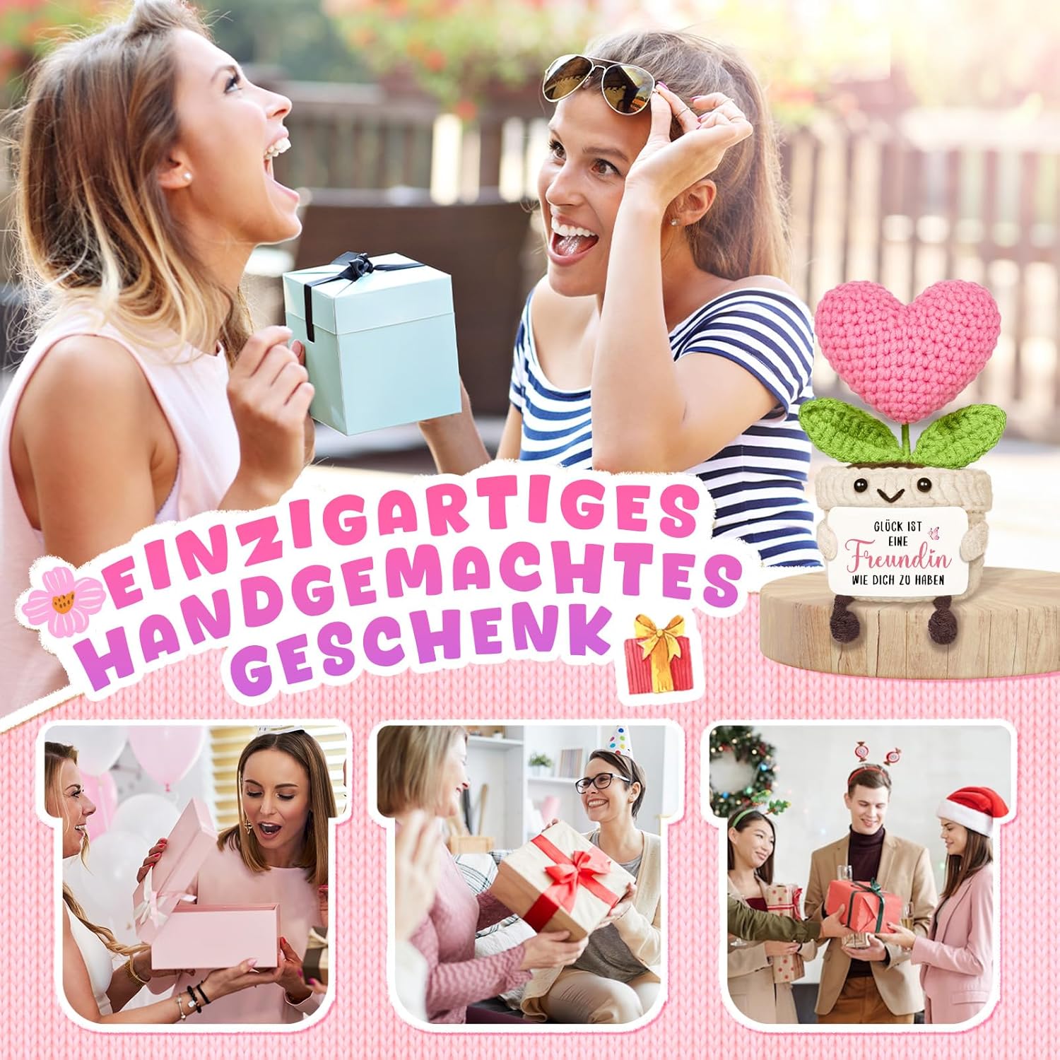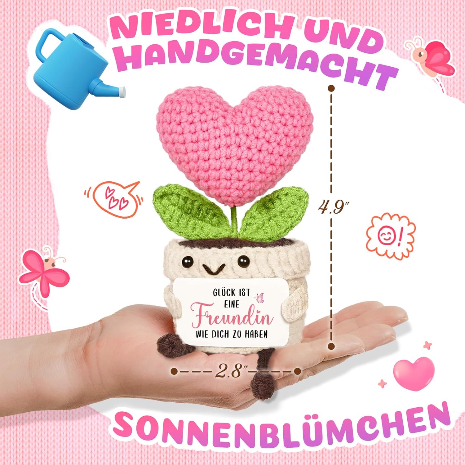 • ЧЕСТИТ 50-ТИ РОЖДЕН ДЕН Това сладко плетено цвете във формата на сърце от Giftasy е топъл подарък за 50-ти рожден ден - идеален за приятелки, сестри, майки или специални жени в живота. С веселото си лице и любящото послание „Честит 50-ти рожден ден!“, то носи радост и добро чувство в сърцето ден след ден.