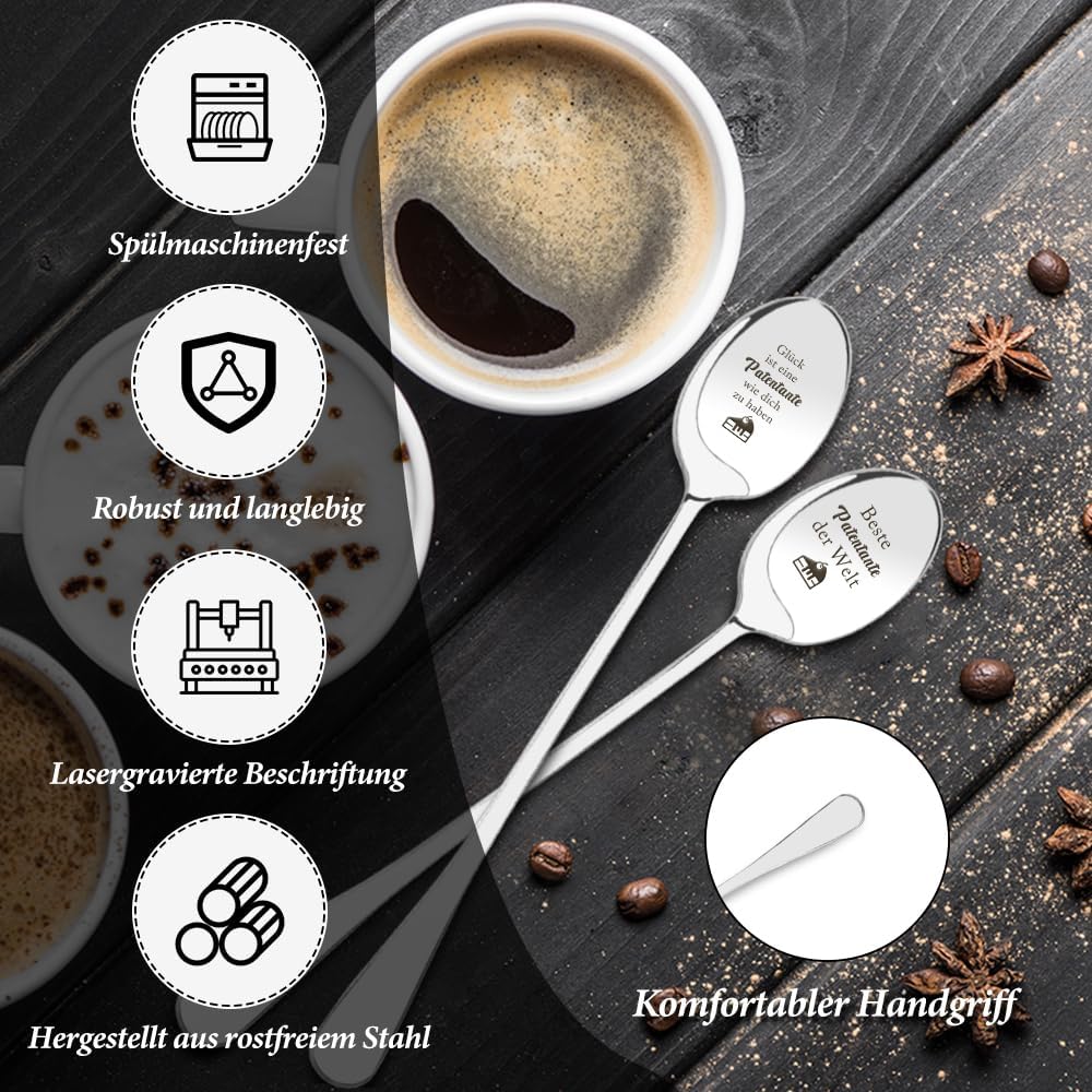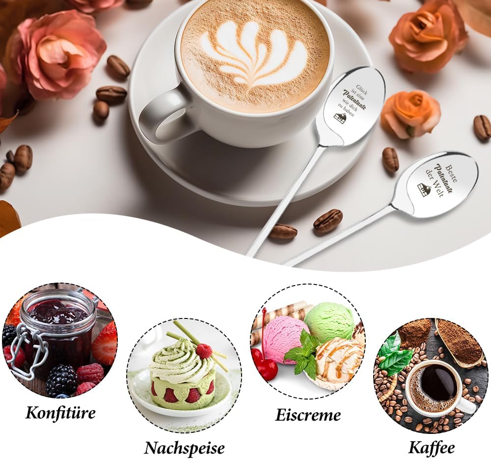 • Многофункционална употреба: Тази гравирана лъжичка за кафе е изключително универсална в ежедневието. Може да се използва за сервиране на кафе, чай, сладолед, супа, Нутела, зърнени закуски, официални ястия или закуски, както и за разбъркване на коктейли и супи. Ако търсите практичен и обмислен подарък, тази лъжичка е перфектният избор. Идеална е като подарък за рожден ден на приятелка, малък сватбен подарък, подарък за прощаване на приятелка, романтичен подарък за мъж или подарък за рожден ден на жена или партньор.
