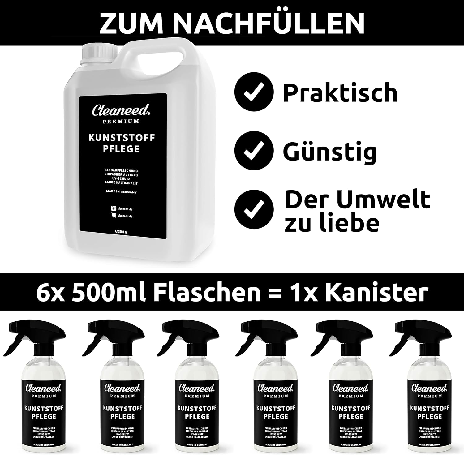 • ️ Лесно нанасяне - Напръскайте произведения в Германия препарат за грижа за пластмаса за автомобили върху повърхността. След това избършете излишната активна съставка с микрофибърна кърпа. Готово.