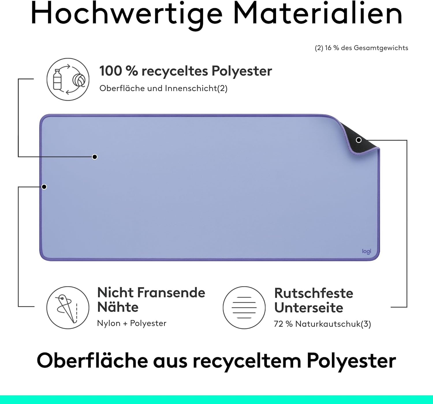 • Изработено с прецизност: край на разнищването благодарение на устойчивите на разнищване, издръжливи плоски ръбове на шева; допълнителна стабилност благодарение на неплъзгащата се гумена основа (съдържание на латекс)