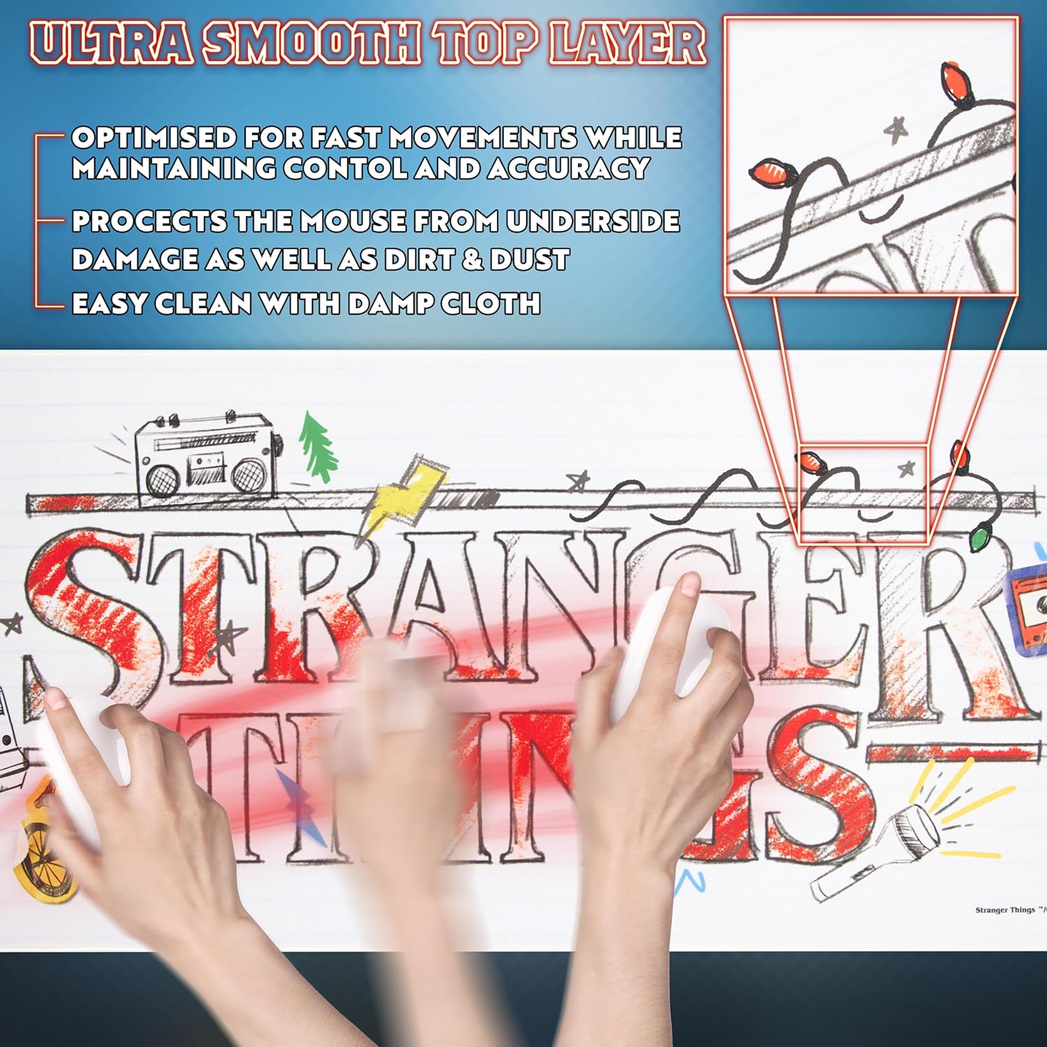 Подложка за бюро Stranger Things XXL - Подложка за мишка, аксесоари за геймърско бюро 800 x 360 мм - Неплъзгаща се, Подложка за офис консумативи, подложка за бюро, декорация за офис (бяла)