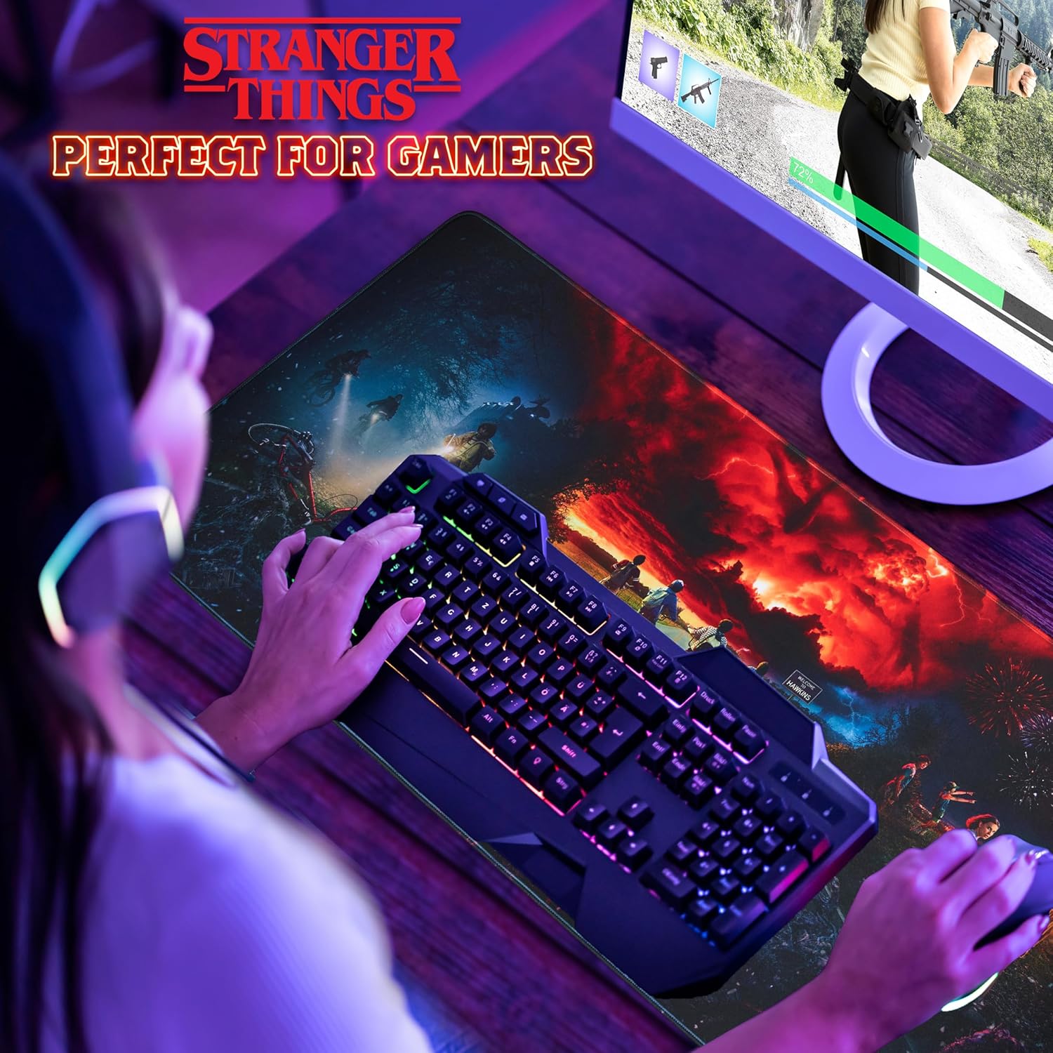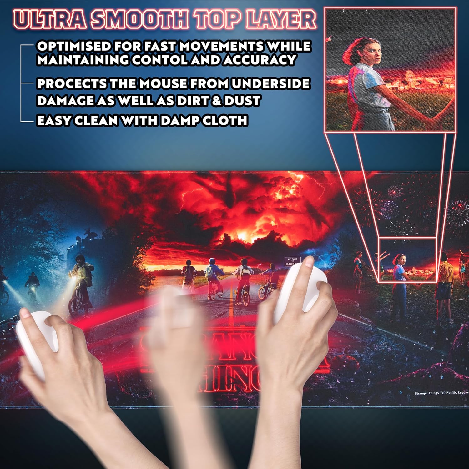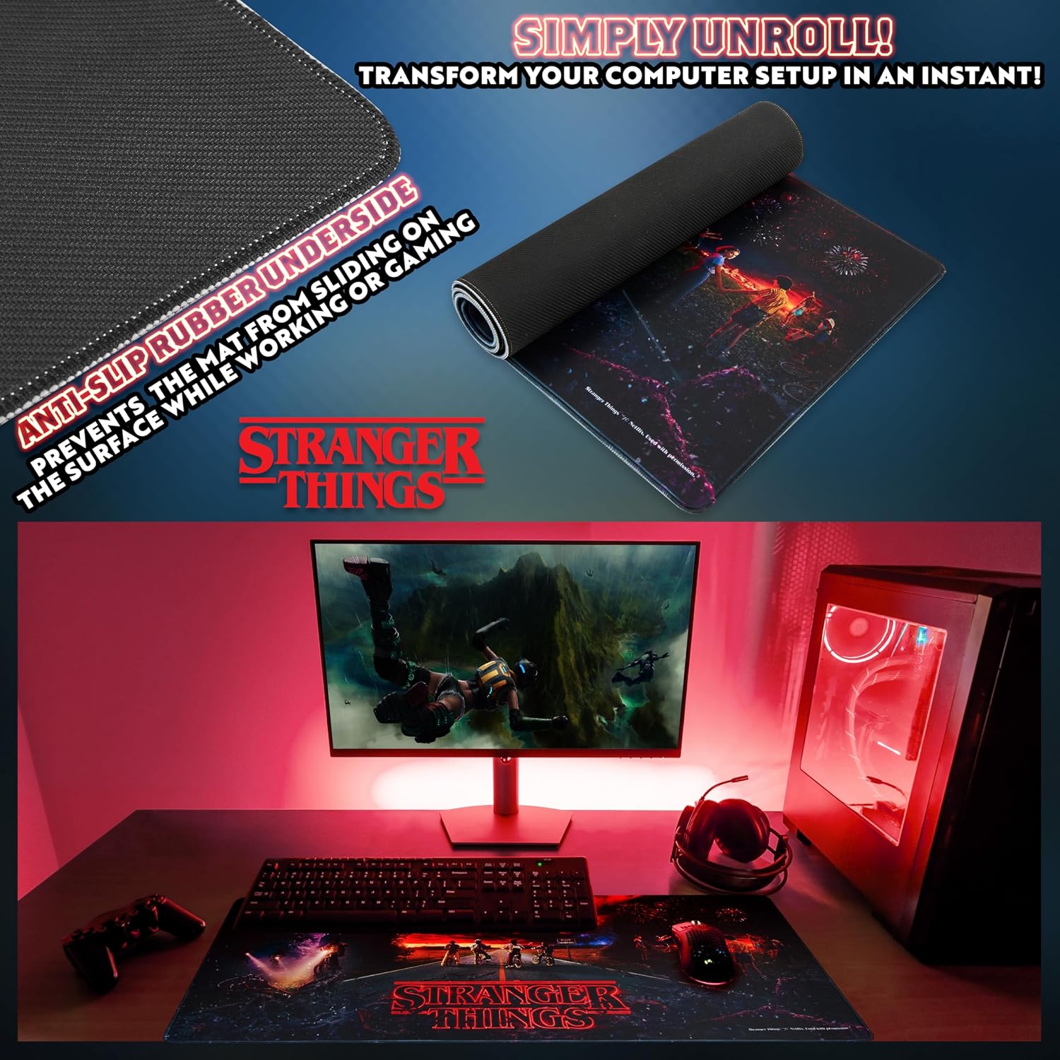 Подложка за бюро Stranger Things XXL - Подложка за мишка, аксесоари за геймърско бюро 800 x 360 мм - Неплъзгаща се, Подложка за офис консумативи, подложка за бюро, декорация за офис (черна)