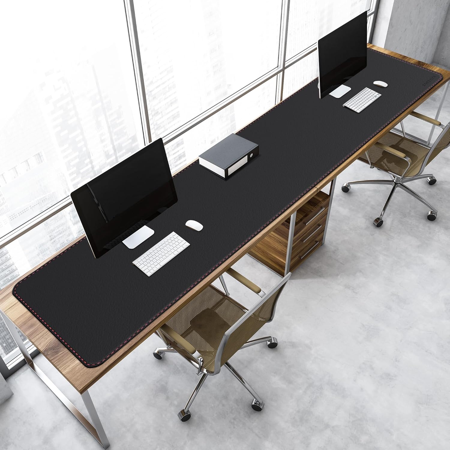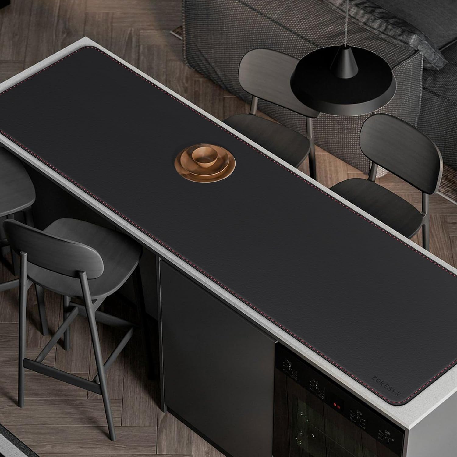 Подложка за бюро ZORESYN Premium от изкуствена кожа, 190 x 50 см, водоустойчива и неплъзгаща се, идеална за офис, домашен офис, маса за хранене, кухня (черна)
