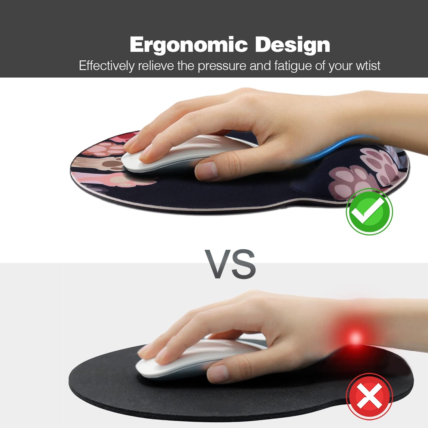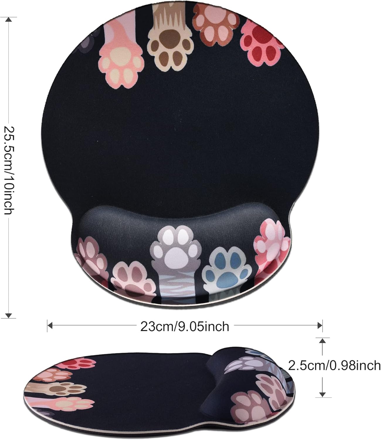 Подложка за мишка EFISH с мемори пяна, ергономична с нехлъзгаща се гумена основа за лаптоп, игри и офис, котешка лапа