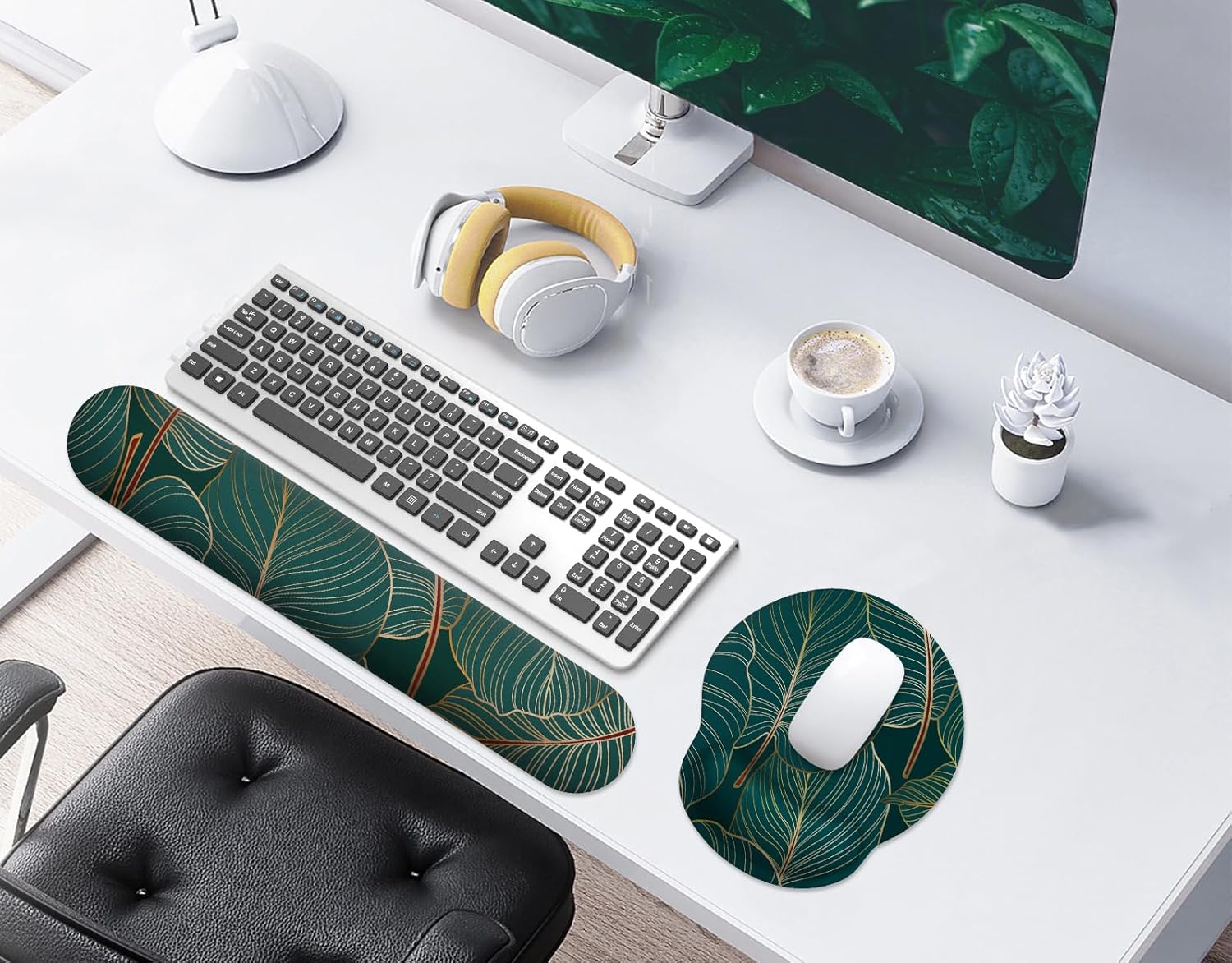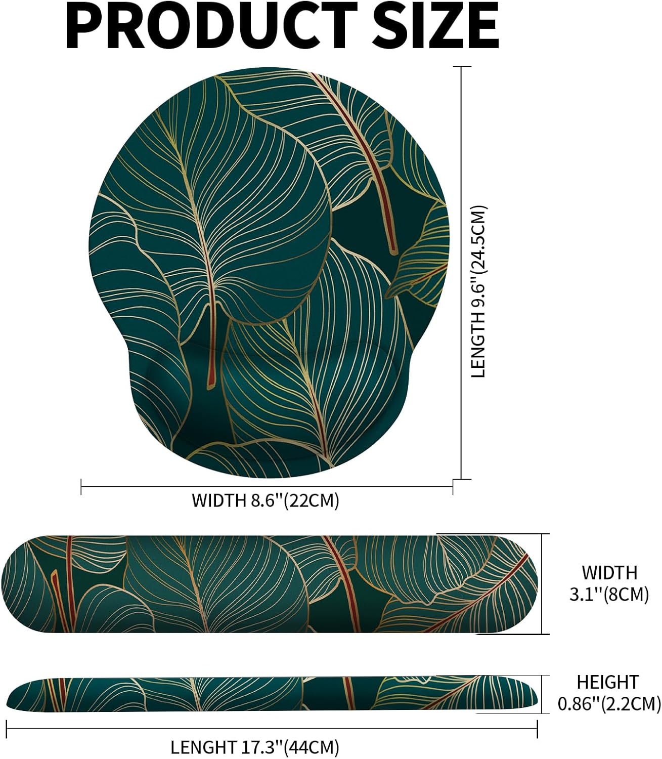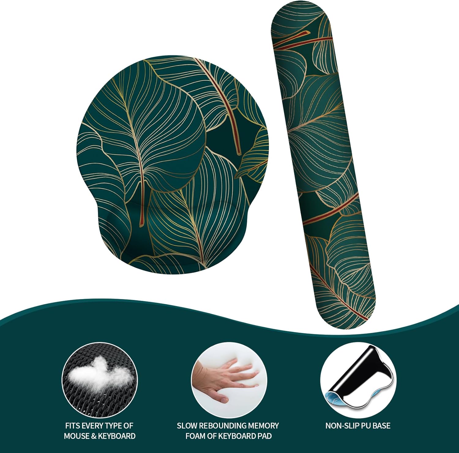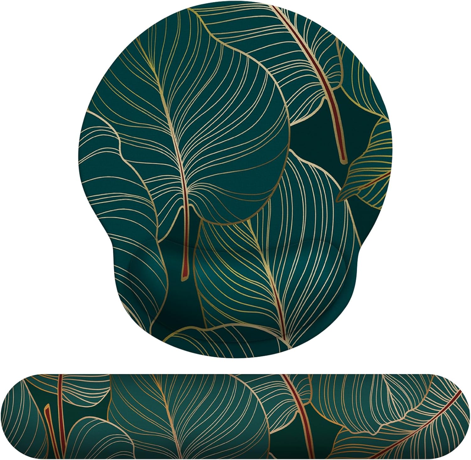 Подложка за мишка Giecy с гел възглавничка, подложка за мишка с поставка за длани, ергономична, удобна компютърна мишка с поставка за китката за лаптоп, гейминг, подложка за мишка с неплъзгаща се PU долна страна (комплект тропически растения)