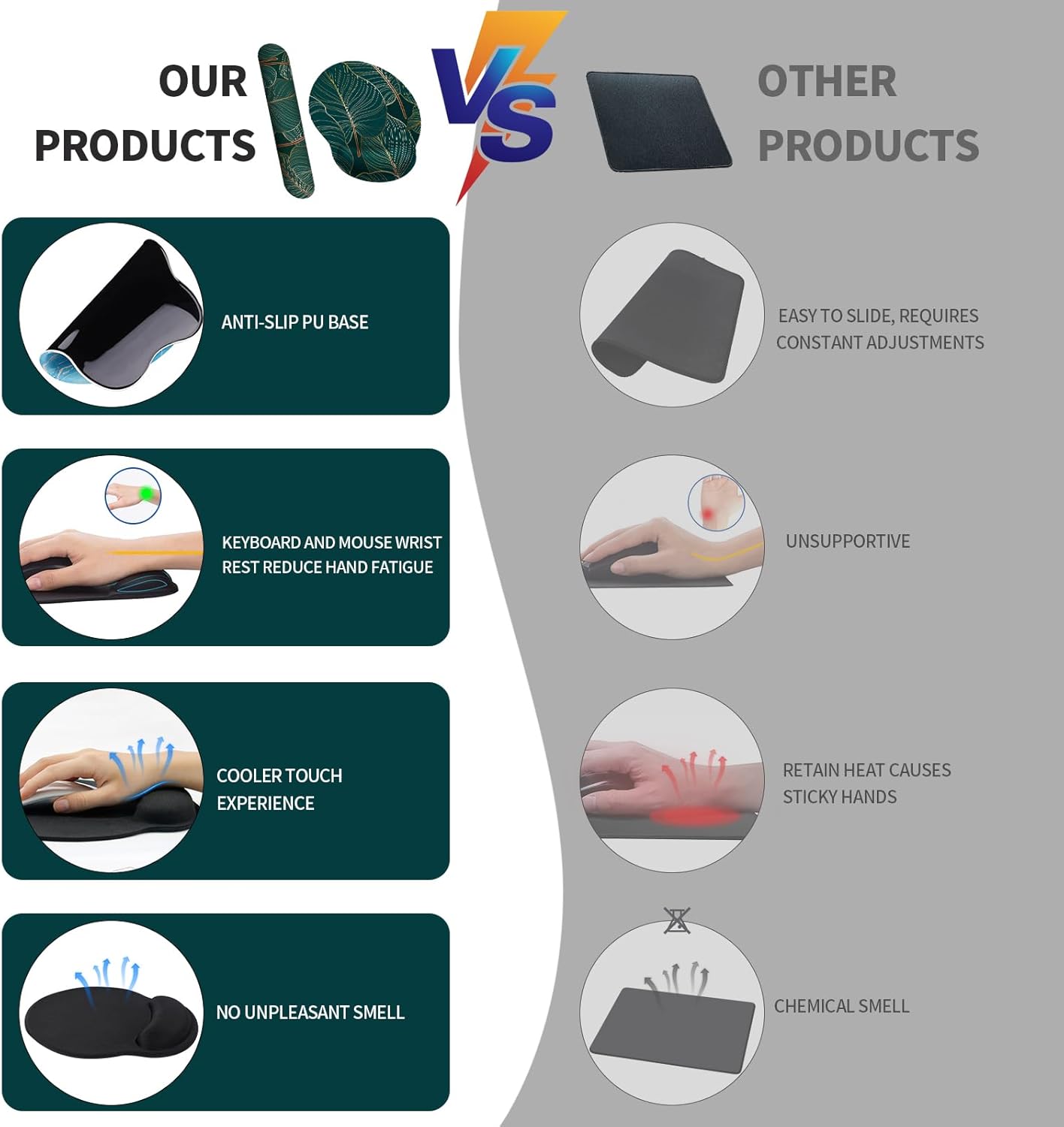 • Охлаждащ ефект: подложките за мишка с поставка за китката са проектирани с охлаждащ ефект, който намалява образуването на пот и влага върху китката. Това поддържа китката ви суха и удобна дори по време на продължителна работа с компютър.
