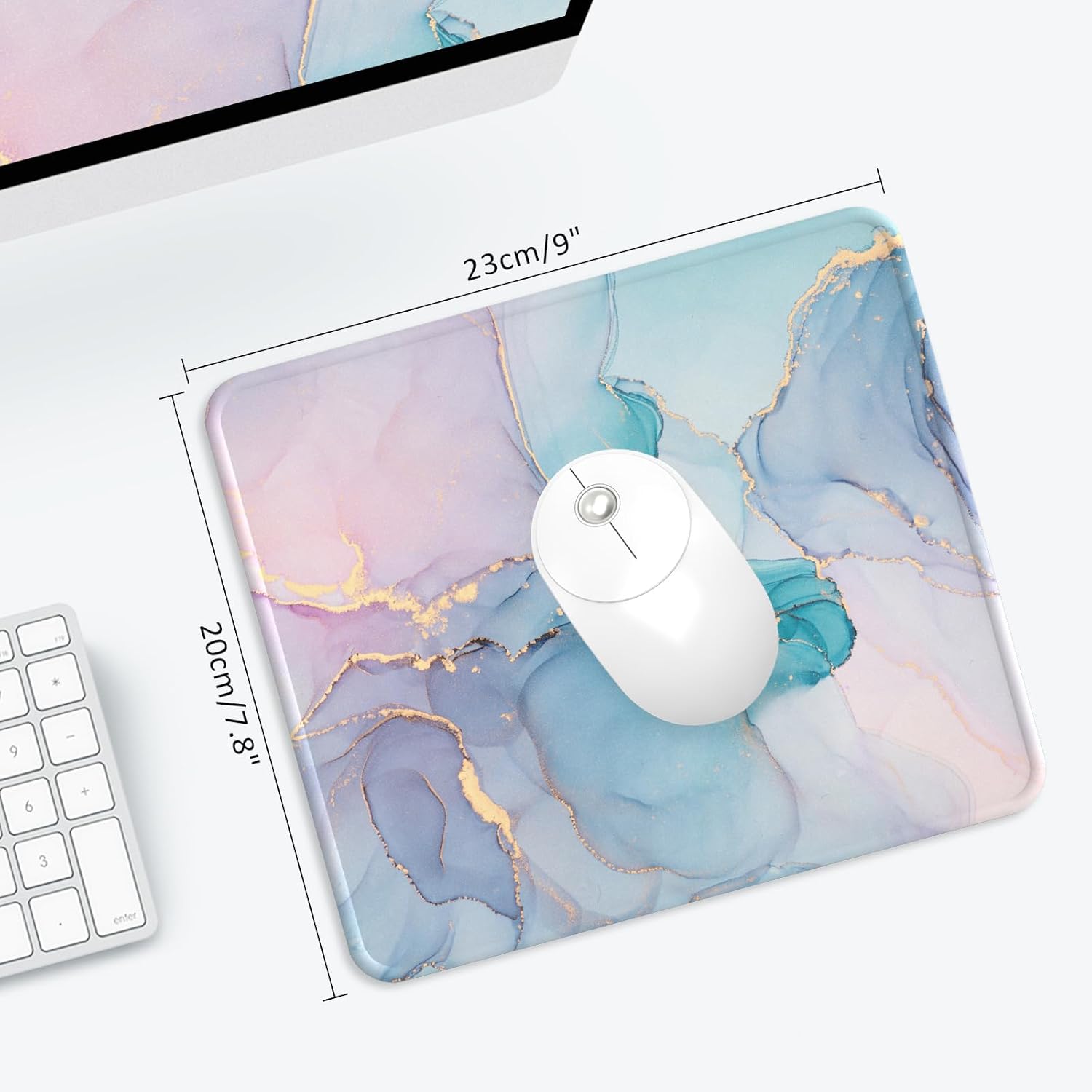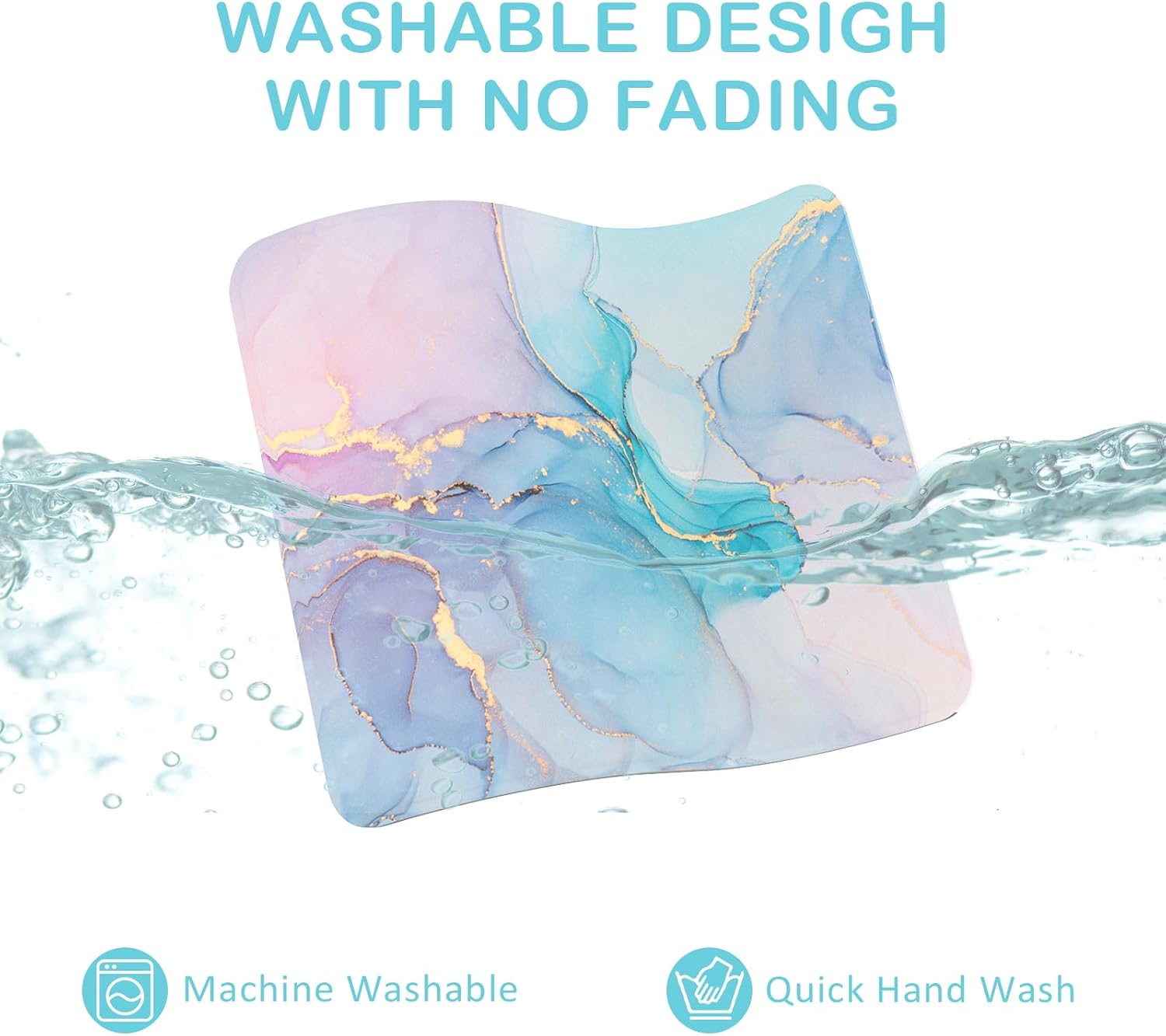 Подложка за мишка Giecy с гел възглавничка, подложка за мишка с поставка за длани, ергономична, удобна поставка за китката на компютъра, мишка за лаптоп, геймърска, подложка за мишка с неплъзгаща се PU долна страна (12-син ружов мрамор)