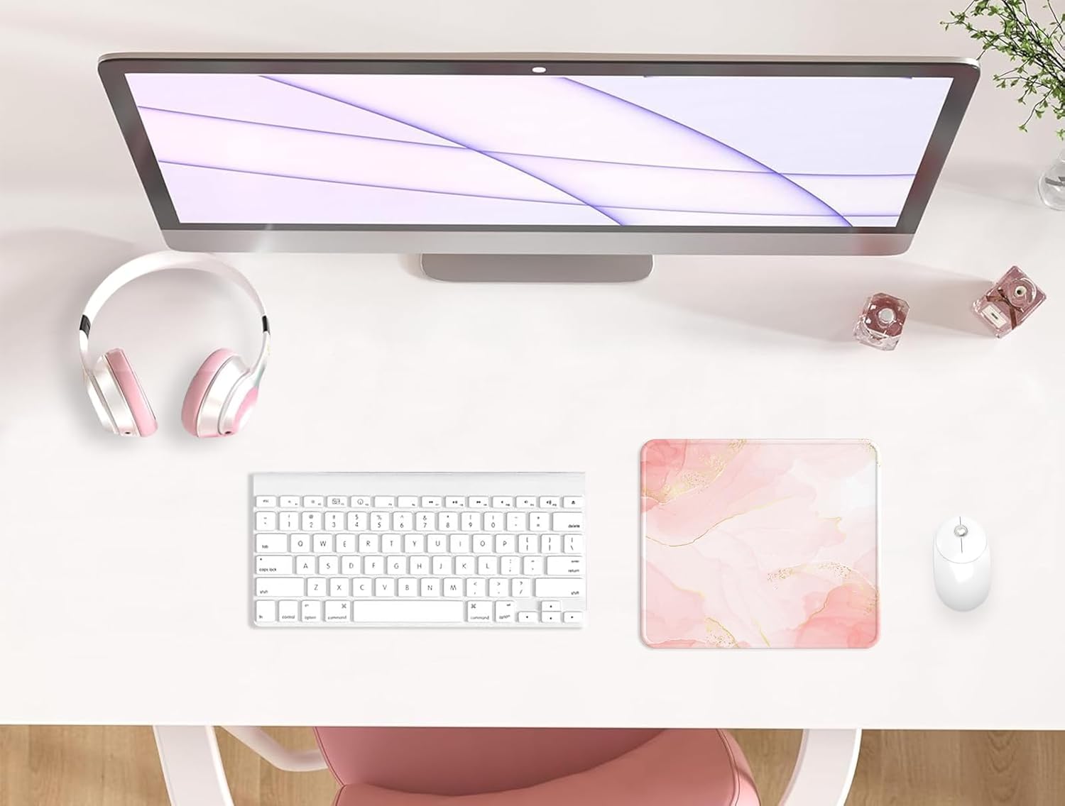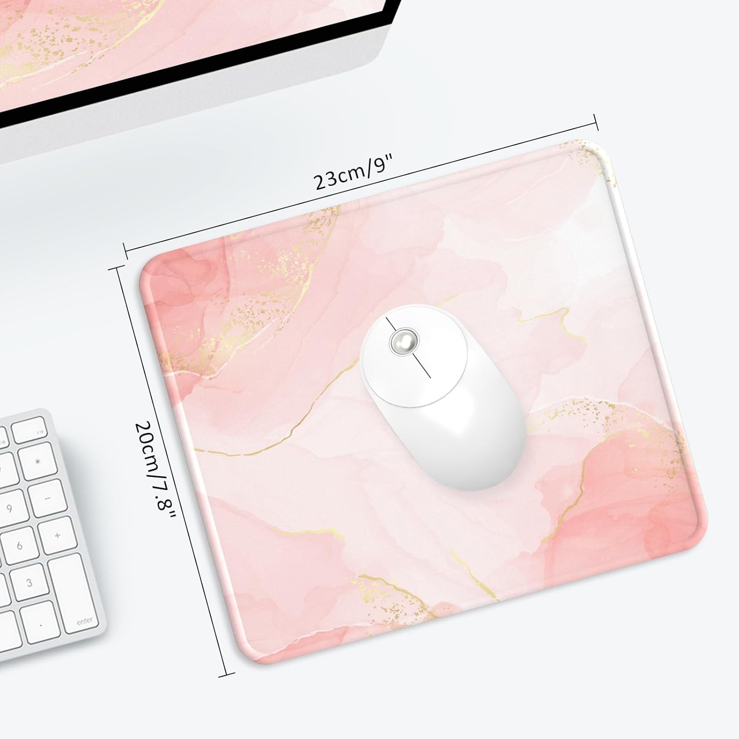Подложка за мишка Giecy с гел възглавничка, подложка за мишка с поставка за длани, ергономична, удобна поставка за китката на компютъра, мишка за лаптоп, геймърска, подложка за мишка с неплъзгаща се PU долна страна (13-розово златисто)