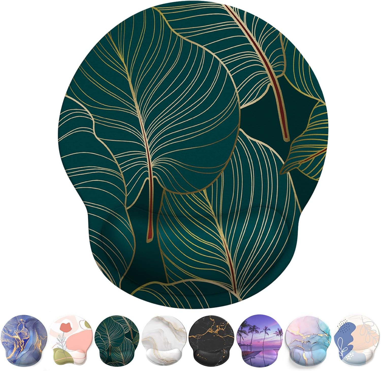 Подложка за мишка Giecy с гел възглавничка, подложка за мишка с поставка за длани, ергономична, удобна поставка за китката на компютъра, мишка за лаптоп, геймърска, подложка за мишка с неплъзгаща се PU долна страна (A-Тропически растения)