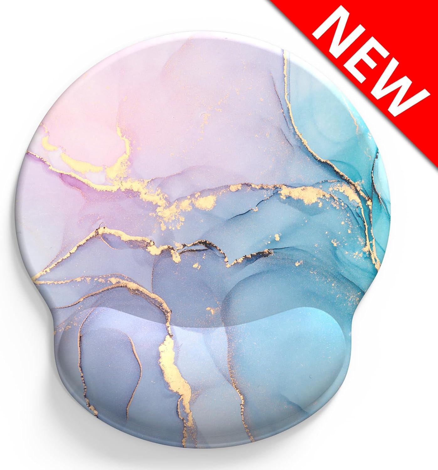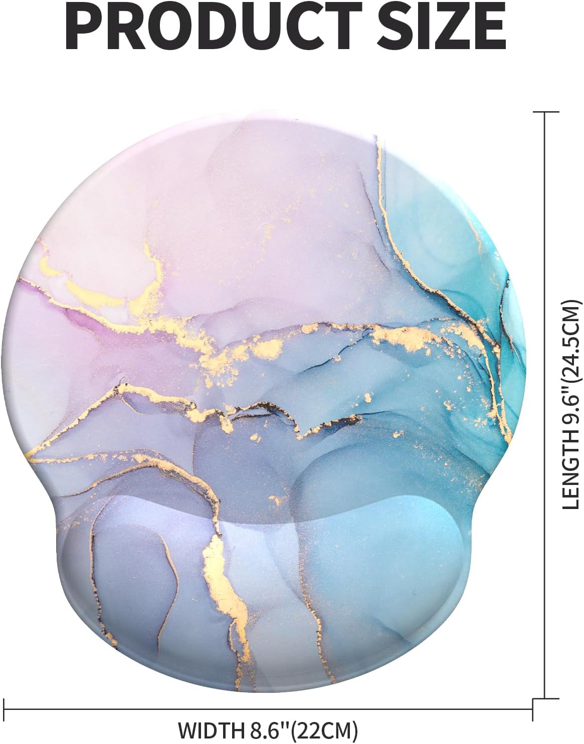 Подложка за мишка Giecy с гел възглавничка, подложка за мишка с поставка за длани, ергономична, удобна поставка за китката на компютъра, мишка за лаптоп, геймърска, подложка за мишка с неплъзгаща се PU основа (прахово син мрамор)