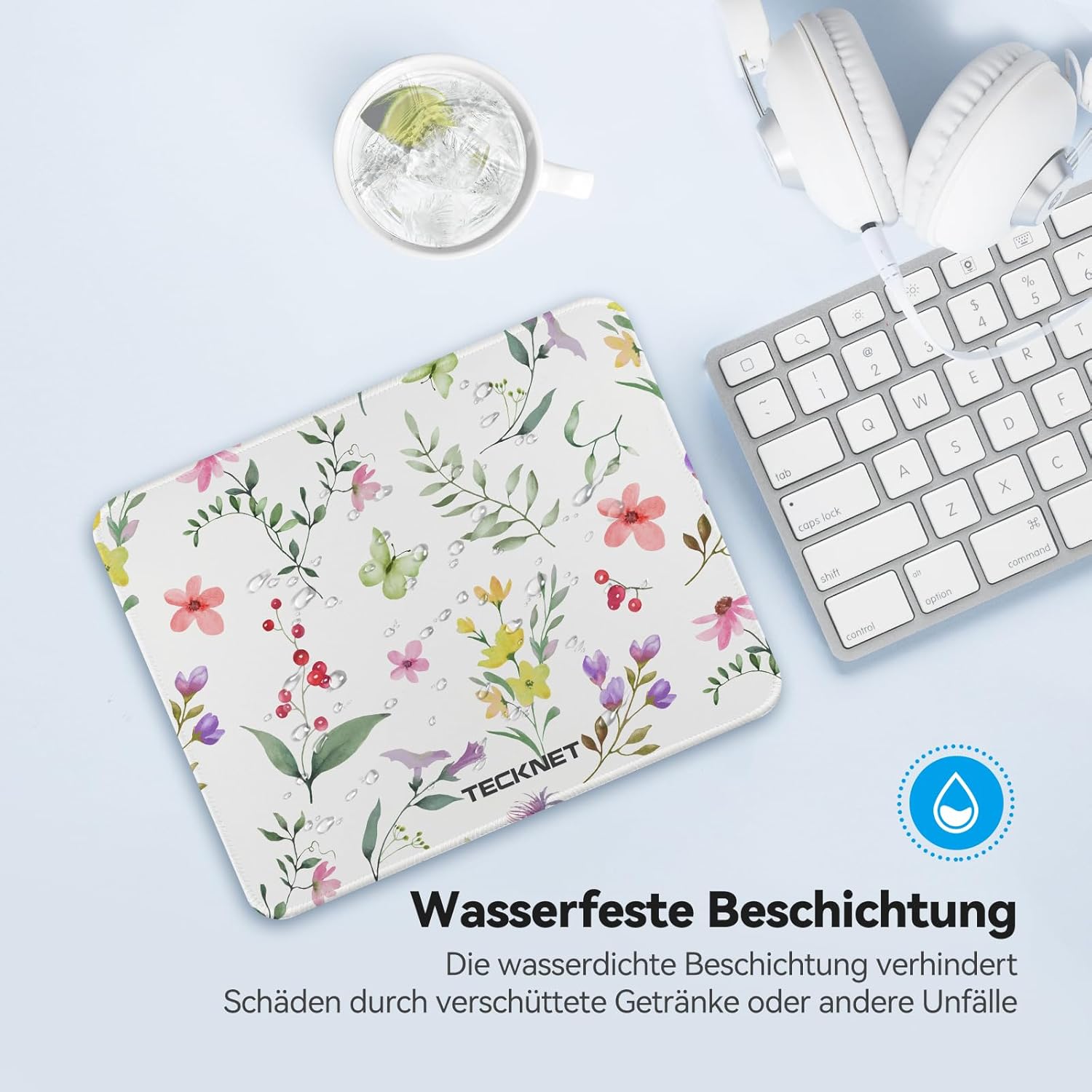 Подложка за мишка TECKNET, 28 x 21 см, геймърска подложка за мишка с водоустойчива и неплъзгаща се гума за компютър, офис, работа, игри, учене, лаптоп, компютър, дом, флорален мотив