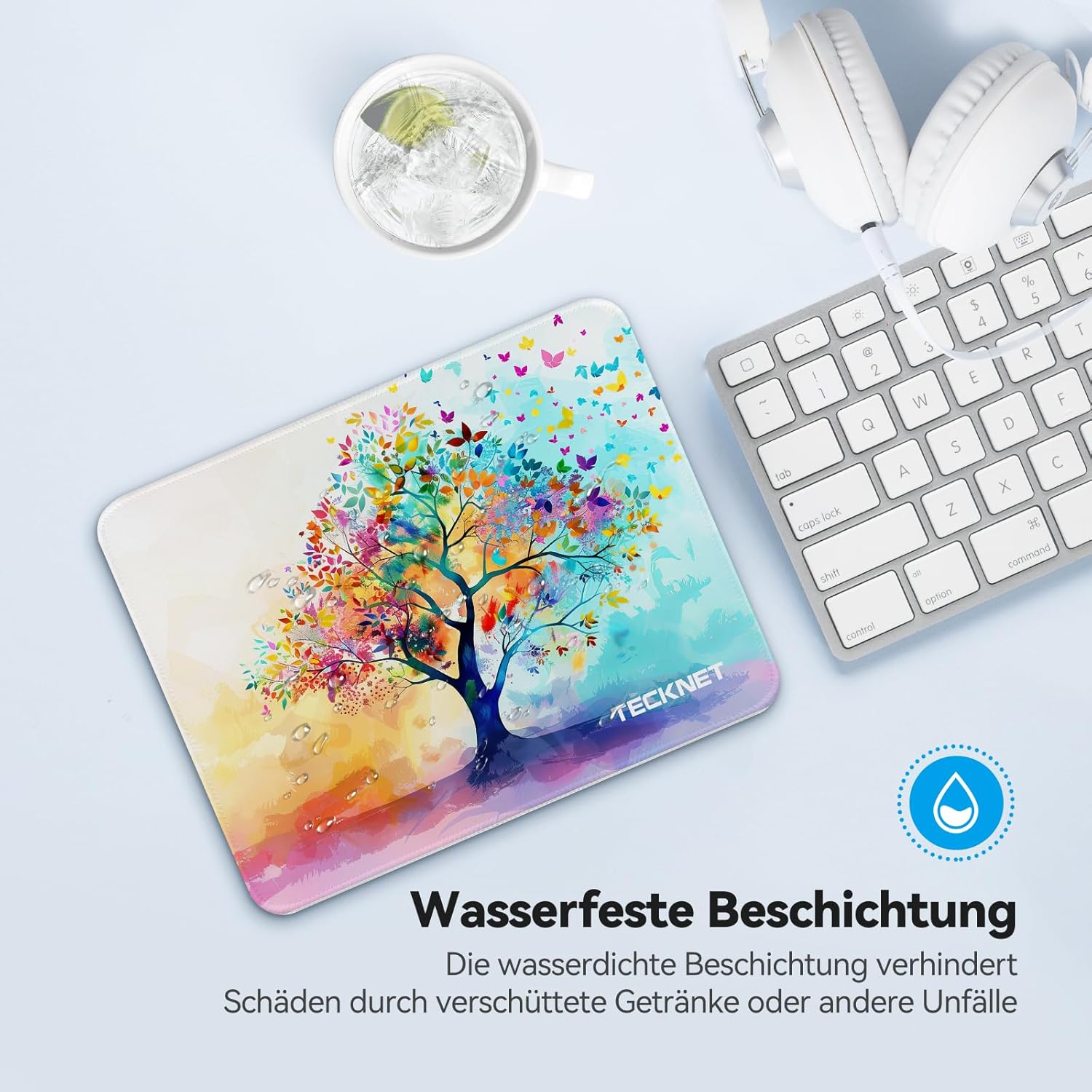 Подложка за мишка TECKNET, 28 x 21 см, геймърска подложка за мишка с водоустойчива и неплъзгаща се гума за компютър, офис, работа, игри, учене, лаптоп, компютър, дом, цветно дърво