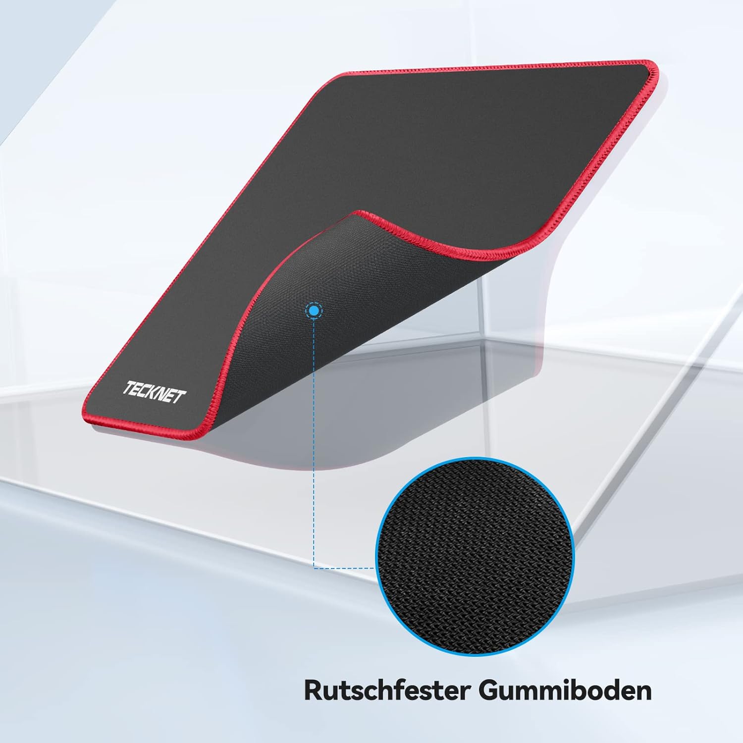 Подложка за мишка TECKNET, 280 x 210 мм, геймърска подложка за мишка с водоустойчива и неплъзгаща се гума за компютър, офис, работа, игри, учене, лаптоп, компютър, дом, червена