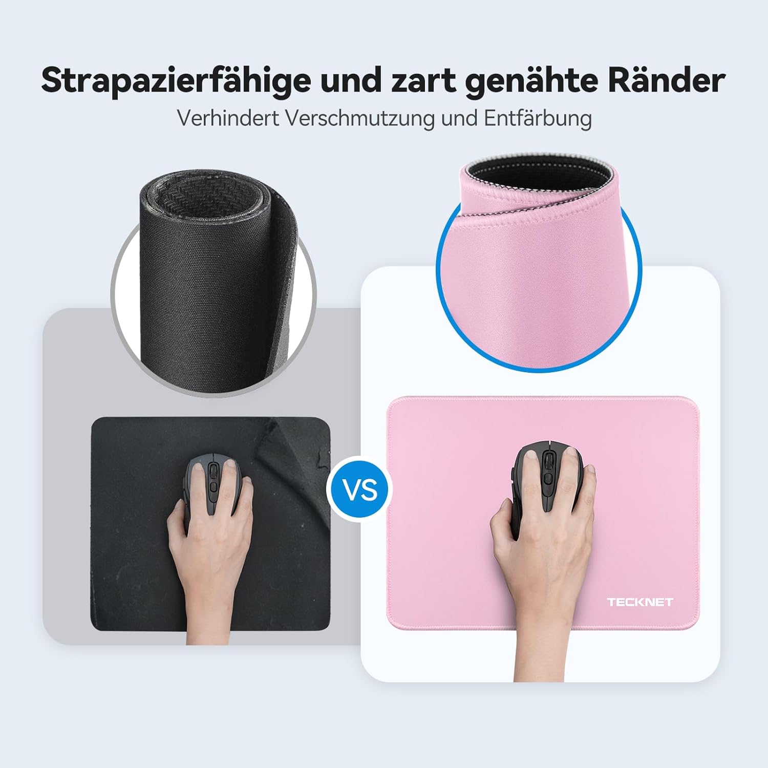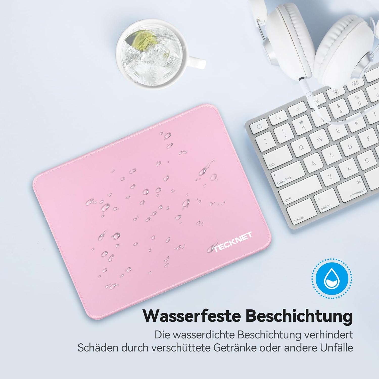 Подложка за мишка TECKNET, 280 x 210 мм, геймърска подложка за мишка с водоустойчива и неплъзгаща се гума за компютър, офис, работа, игри, учене, лаптоп, компютър, дом, розова