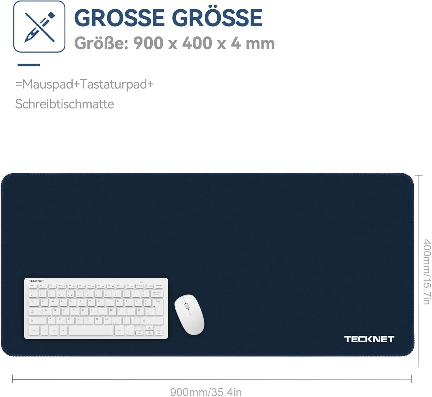 • Подложка за мишка с разширен размер XXL: 900 x 400 x 4 мм, супер голяма подложка за мишка. Идеална за ежедневна работа и за геймъри. Подложката за мишка осигурява достатъчно място за вашите мишки, клавиатура и много други, като същевременно защитава бюрото ви. Също така е перфектна подложка за бюро.