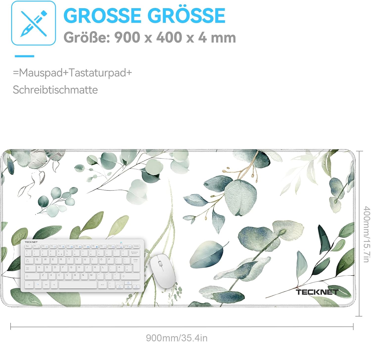 • Подложка за мишка с разширен размер XXL: 900 x 400 x 4 мм, супер голяма подложка за мишка. Идеална за ежедневна работа и за геймъри. Подложката за мишка осигурява достатъчно място за вашите мишки, клавиатура и много други, като същевременно защитава бюрото ви. Също така е перфектна подложка за бюро.