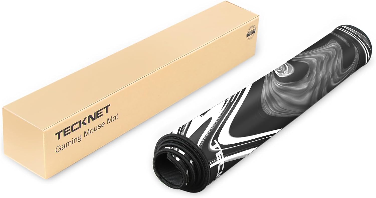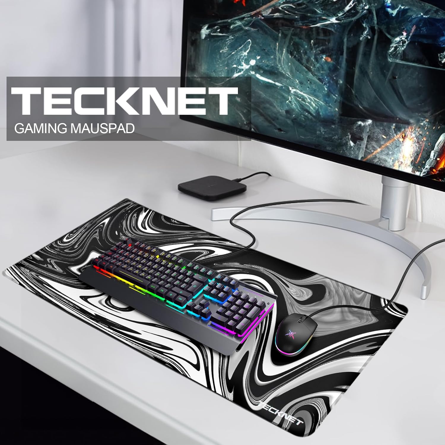 Подложка за мишка TECKNET XXL Speed ​​Gaming, 900 x 400 мм, черна, геймърска подложка за мишка, водоустойчива подложка за мишка, специална повърхност за подобряване на прецизността и скоростта, неплъзгаща се гумена основа