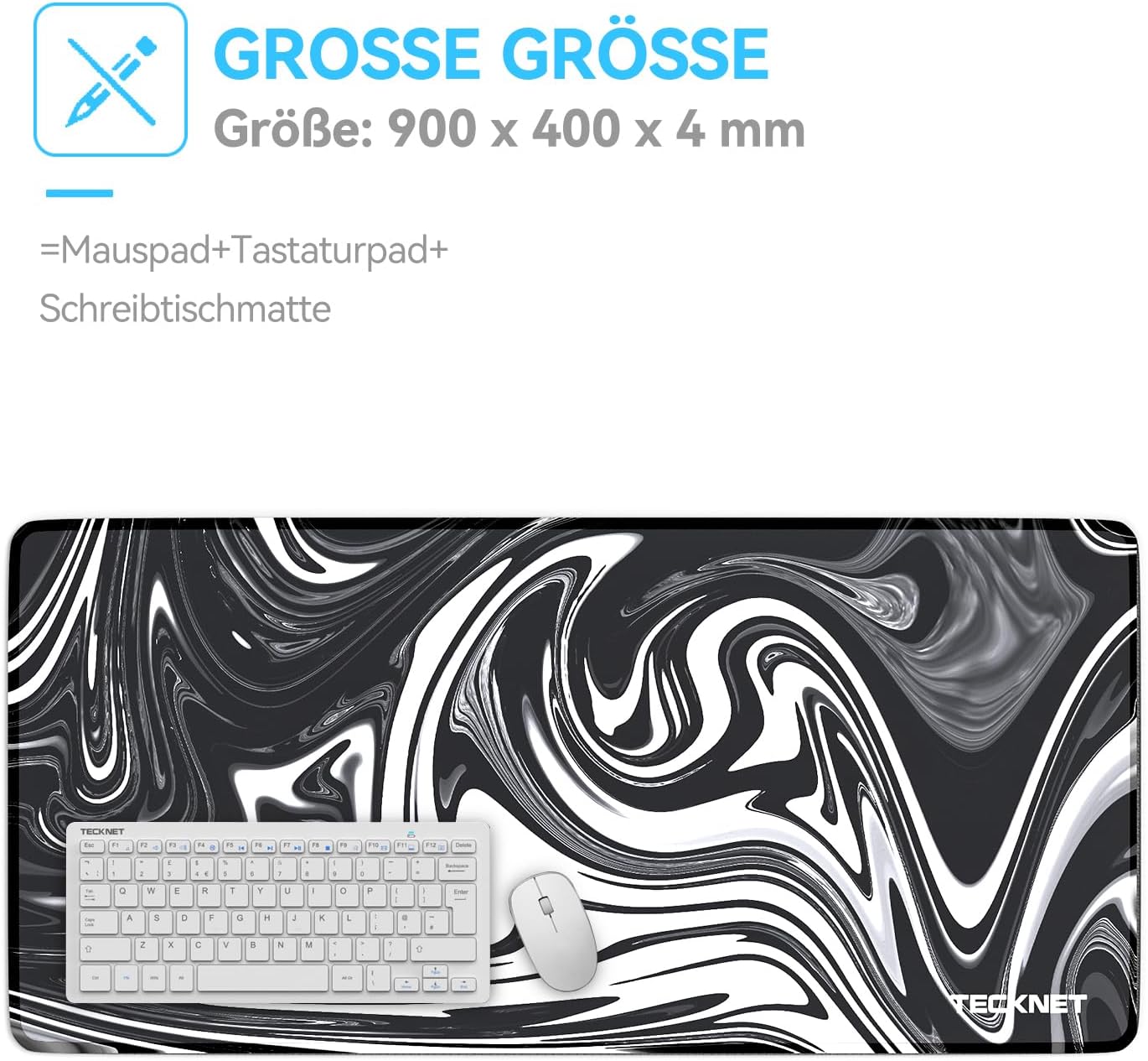 • Подложка за мишка с разширен размер XXL: 900 x 400 x 4 мм, супер голяма подложка за мишка. Идеална за ежедневна работа и за геймъри. Подложката за мишка осигурява достатъчно място за вашите мишки, клавиатура и много други, като същевременно защитава бюрото ви. Също така е перфектна подложка за бюро.