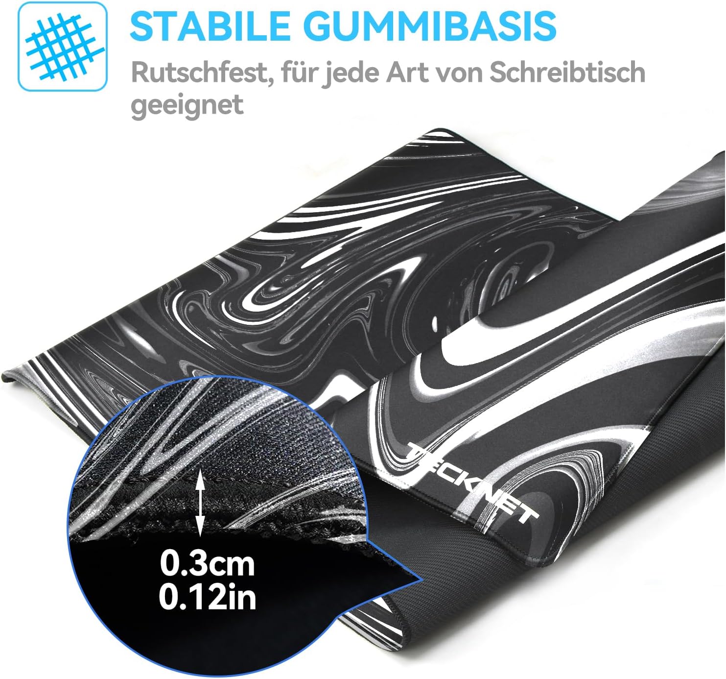 • Неплъзгаща се гумена основа: неплъзгащата се гумена основа прилепва добре към плота и осигурява стабилна работа на мишката и клавиатурата. Нашата водоустойчива подложка за мишка предлага копринено гладка повърхност, която осигурява най-лесни движения на мишката и оптимално време за реакция за приятно игрово и работно изживяване.