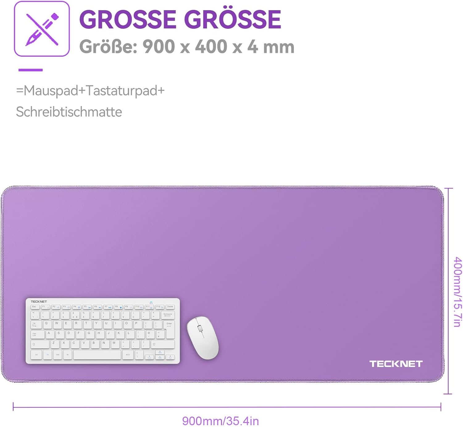 • Подложка за мишка с разширен размер XXL: 900 x 400 x 4 мм, супер голяма подложка за мишка. Идеална за ежедневна работа и за геймъри. Подложката за мишка осигурява достатъчно място за вашите мишки, клавиатура и много други, като същевременно защитава бюрото ви. Също така е перфектна подложка за бюро.