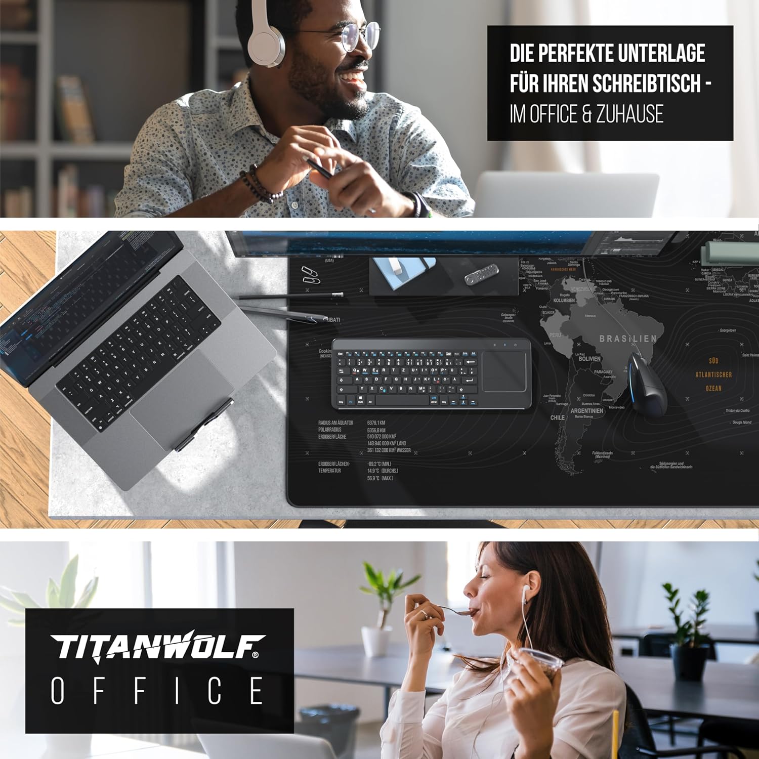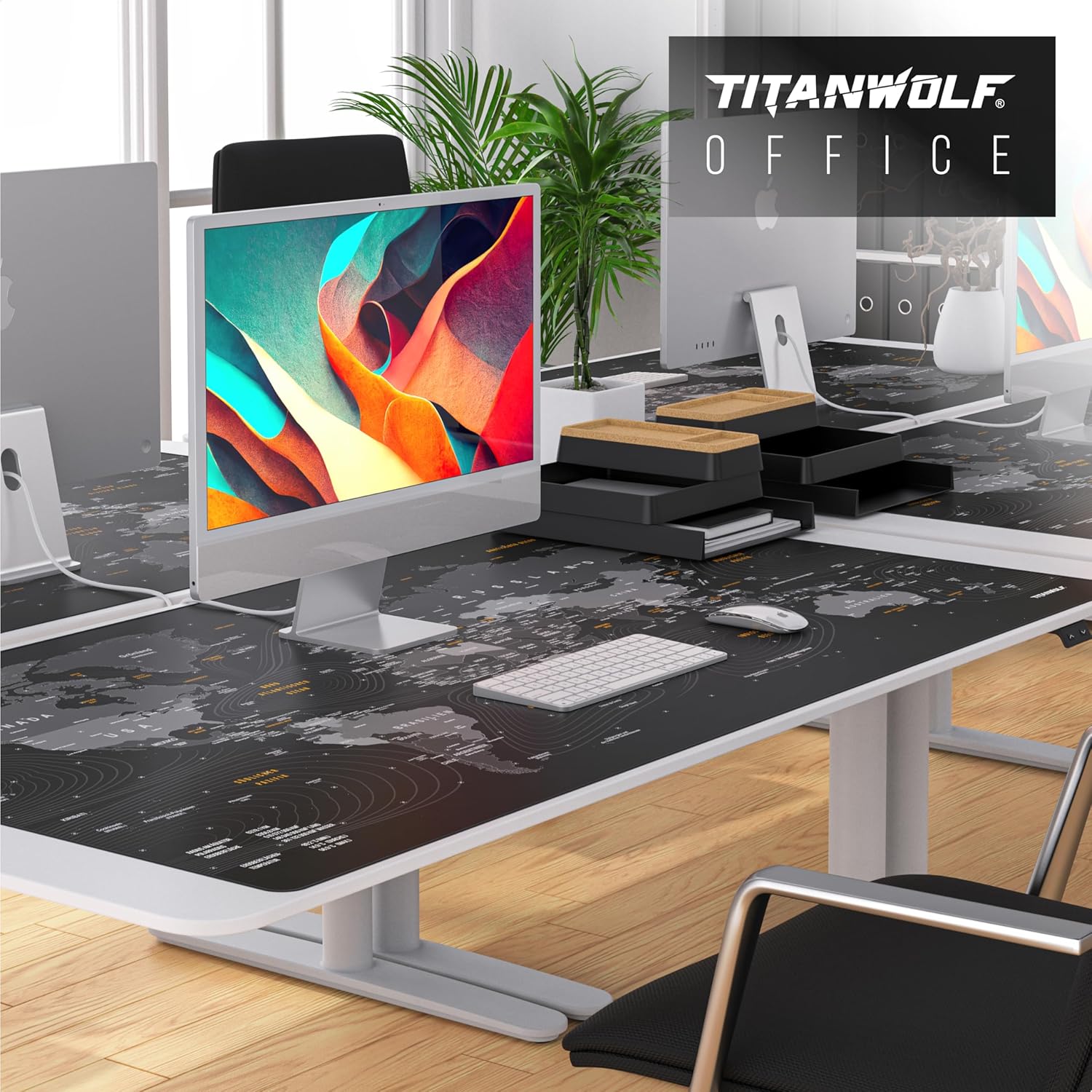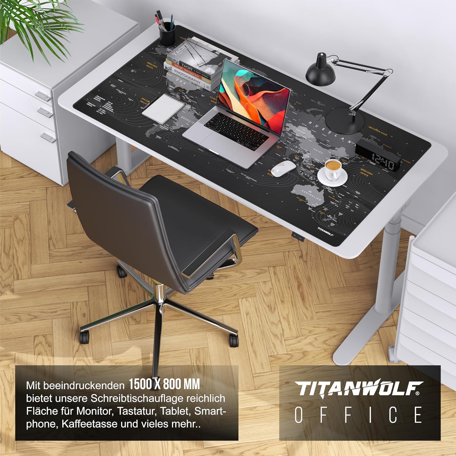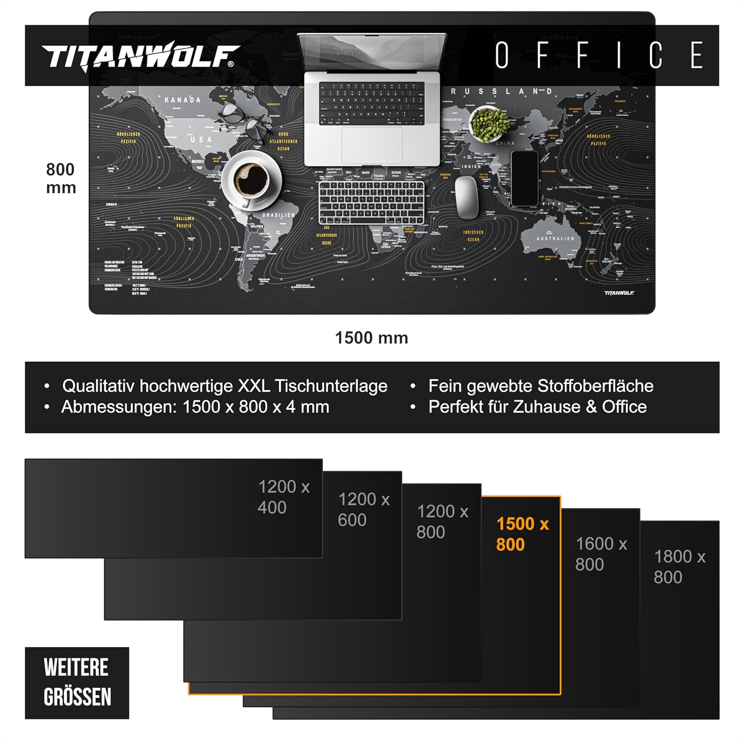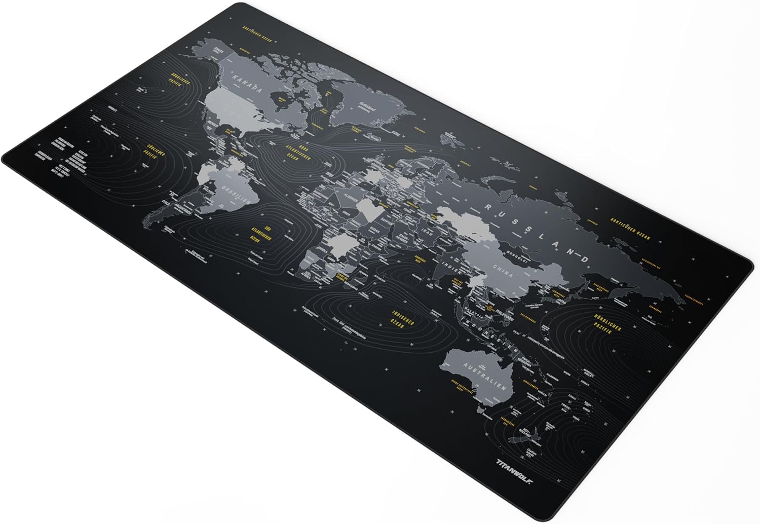Подложка за мишка Titanwolf Oversized, 1500 x 800 мм, XXXL Подложка за мишка, Подложка за бюро за дома и офиса, Голяма, Подложка за клавиатура и мишка, Бюро, 150 x 80 см, Карта на света